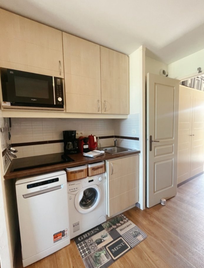 Lave-vaisselle, lave-linge, four combine ,grand frigo congélateur, bouilloire, cafetière filtre et capsules, mixeur, autocuiseur et beaucoup de vaisselles, plats et accessoires