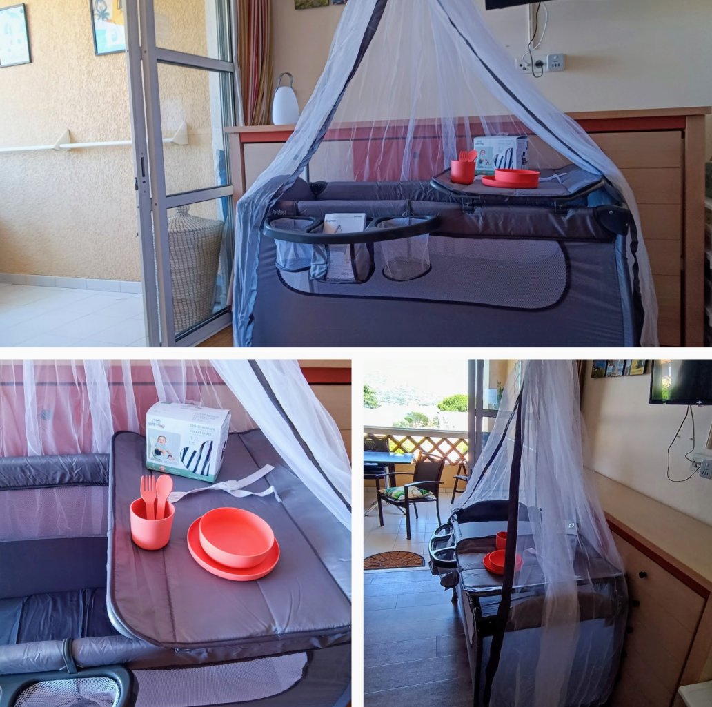 * 🍼 BEBE est le bienvenu , car l'appartement est équipé d'un lit parapluie avec table à langer et moustiquaire, d'un adaptateur de siège babylove et d'un kit vaisselle bébé :),