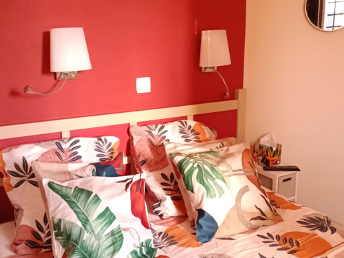 Lit 140 cm non collé non mur, 2 chevets, 1 télévision