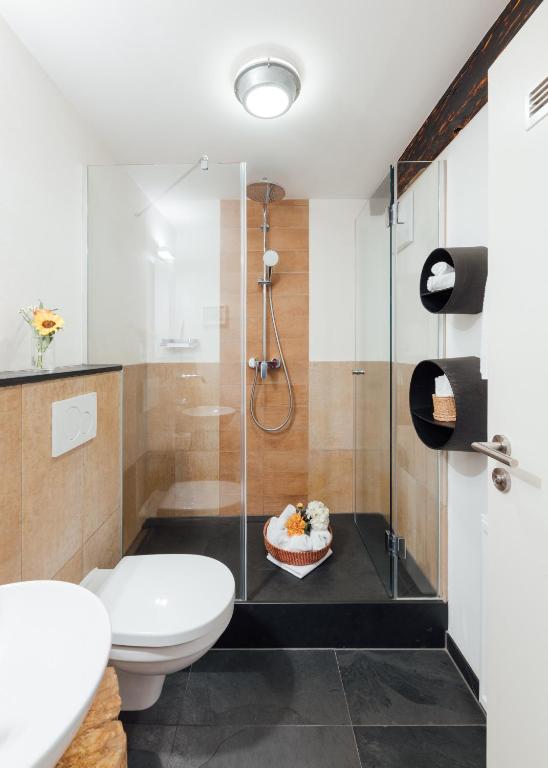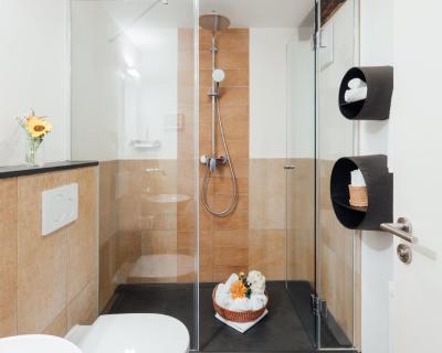 Die Wohneinheiten verfügen über Parkettböden und bieten eine voll ausgestattete Küche mit einem Kühlschrank, einen Essbereich, einen Flachbild-TV sowie ein eigenes Badezimmer mit einer Dusche und einem Haartrockner. Es gibt eine Herdplatte und einen Toaster sowie eine Kaffeemaschine und einen Wasserkocher.