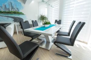 Die Wohneinheiten verfügen über Parkettböden und bieten eine voll ausgestattete Küche mit einem Kühlschrank, einen Essbereich, einen Flachbild-TV mit Satellitenkanälen sowie ein eigenes Badezimmer mit einer Dusche und einem Haartrockner. Es gibt einen Geschirrspüler, eine Mikrowelle und eine Herdplatte sowie eine Kaffeemaschine und einen Wasserkocher.
