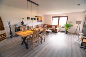 Diese Ferienwohnung mit einer Terrasse und Gartenblick bietet 2 Schlafzimmer, ein Wohnzimmer, einen Flachbild-TV, eine gut ausgestattete Küche mit einem Kühlschrank und einem Geschirrspüler sowie 1 Badezimmer mit einer Dusche. In dieser Ferienwohnung werden Handtücher und Bettwäsche angeboten.