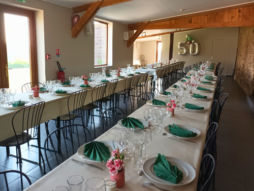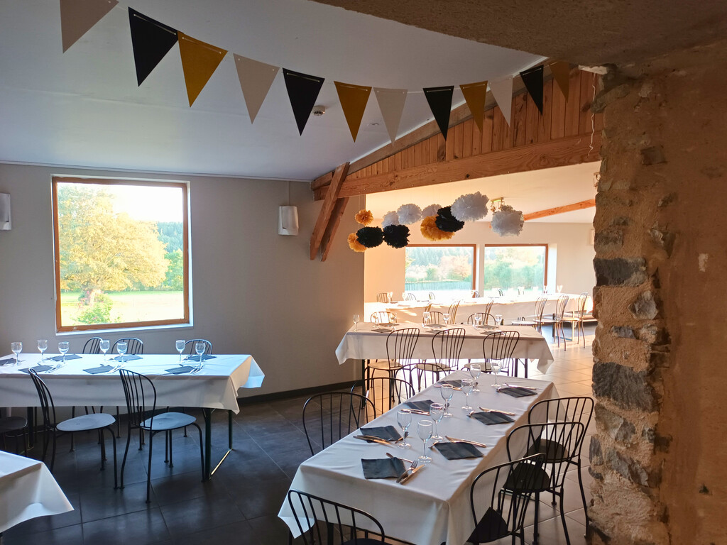 Il est composé de 3 bâtiments avec une grande salle de 120 m². Parfait pour tous vos événements festifs (mariage, anniversaire, cousinades …), Ce vaste gîte est également adapté pour vos rendez-vous professionnels (séminaire, incentive, team-building, stage, formation ...) ou associatifs (sport, développement personnel..). Venez passer un séjour agréable en famille, entre amis ou entre collègues en pleine nature. Gîte accessible PMR et agréé jeunesse et sport pour les séjours scolaires, classes découvertes, et colonies de vacances.