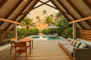 Vous apprécierez de vous détendre au bord de la piscine du bar Fanihandhi, où vous pourrez déguster des cocktails maison et des jus détox tout en admirant les meilleurs couchers de soleil de l'île. Un éventail de collations et de plats internationaux peuvent être servis 24h/24 dans l'intimité de la villa. Sur demande, vous pourrez profiter d'une variété d'expériences culinaires privées telles que le dîner sur la plateforme Handhu, le petit-déjeuner flottant et le dîner au bord de la piscine.