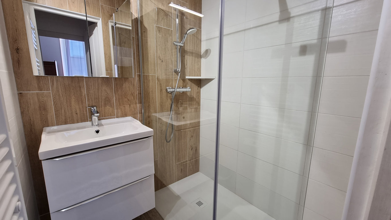 A l’étage : 4 Chambres, un WC séparé et une salle d’eau avec lavabo et douche à l’italienne.