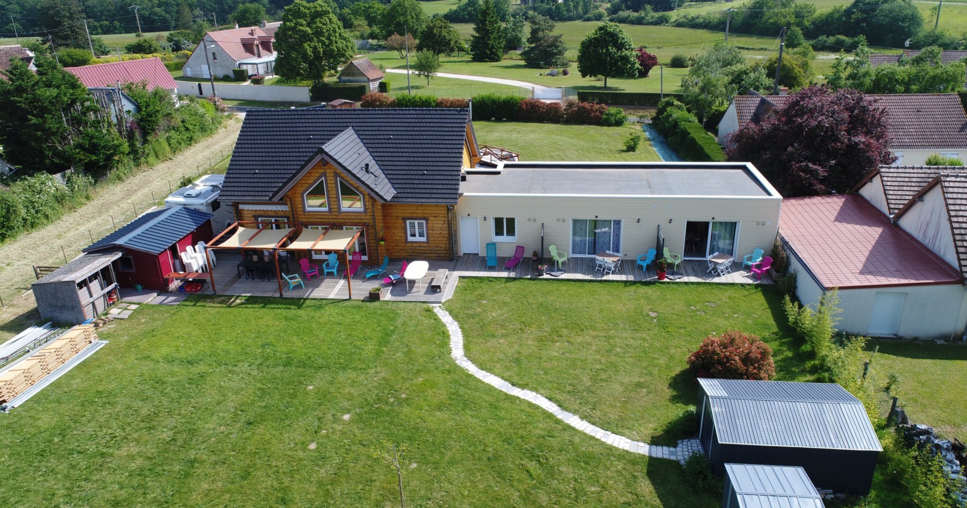 In a green space, surrounded by vineyards on one side and the Chassepaille woods on the other, our two cocooning gîtes for up to 4 people are an extension of our wooden house with independent entrance, located at a place called La Halerie , leaving the village towards Vallières-les-Grandes. Relaxation awaits!