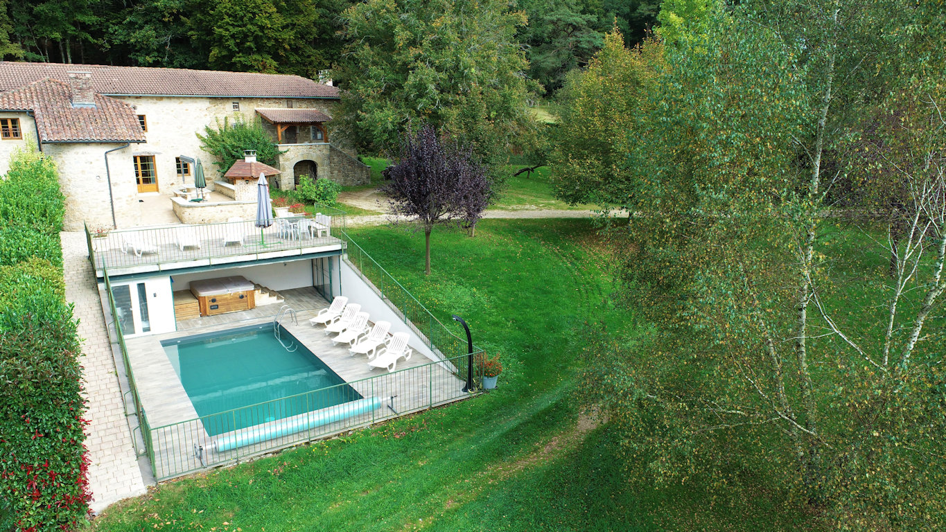 3 gîtes, dont un avec piscine privée plein Sud, offrent la possibilité de location d’un couple à plus de 10 personnes, grande bâtisse en pierre du pays