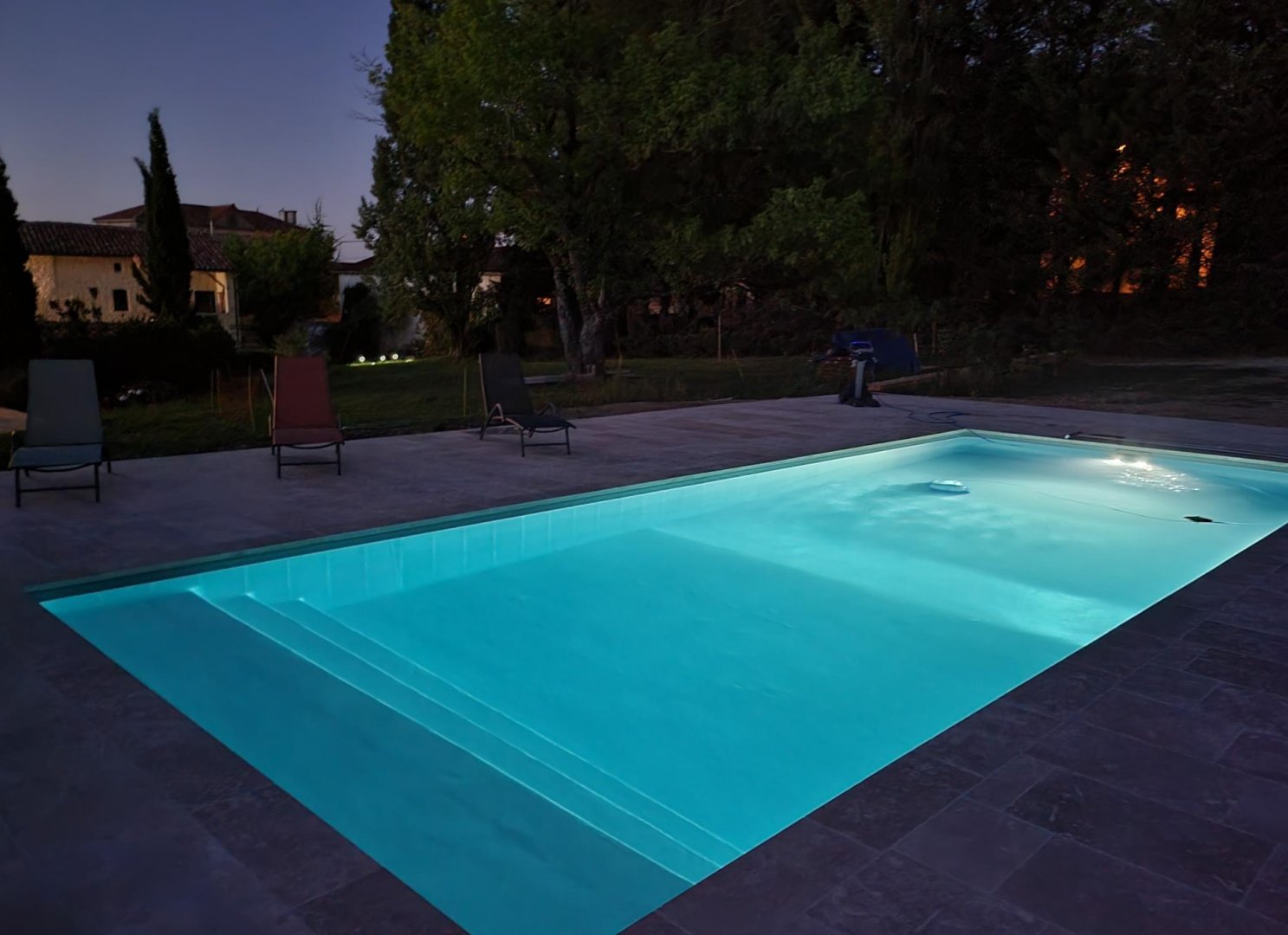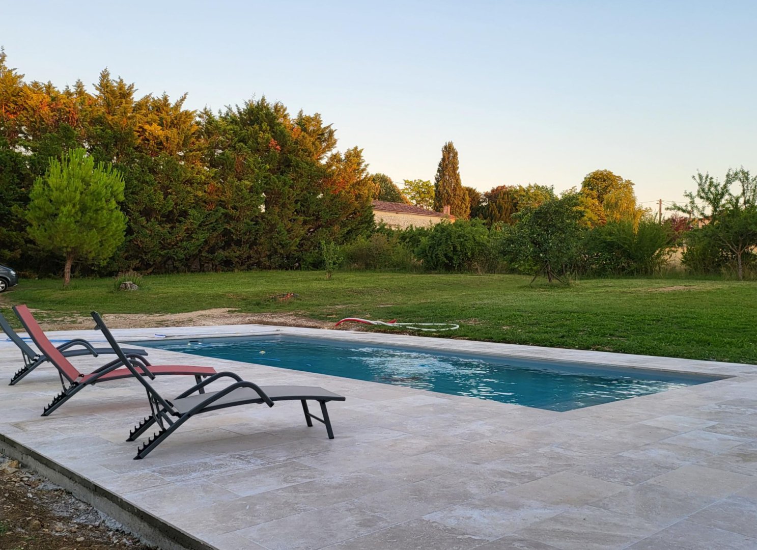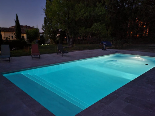 Au soleil ou à l'ombre des arbres, vous pourrez vous détendre à la piscine commune aux hôtes et aux propriétaires dans un parc de 4000 m².