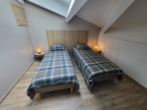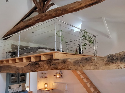 Une chambre indépendante avec un lit double de 160x200 cm ou deux lits de 80x200 cm. Une mezzanine avec un lit double de 160x200 cm. Le canapé se transforme en un vrai lit très confortable de 140x200 cm.