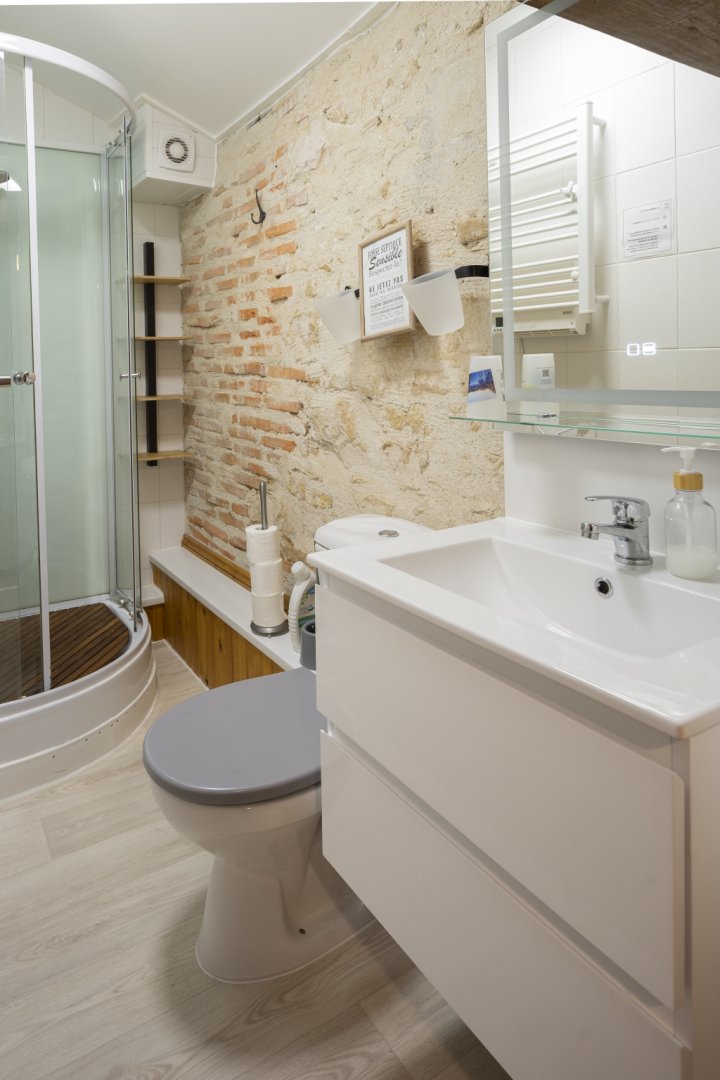 - la salle d'eau à l'étage comprend un WC et une douche