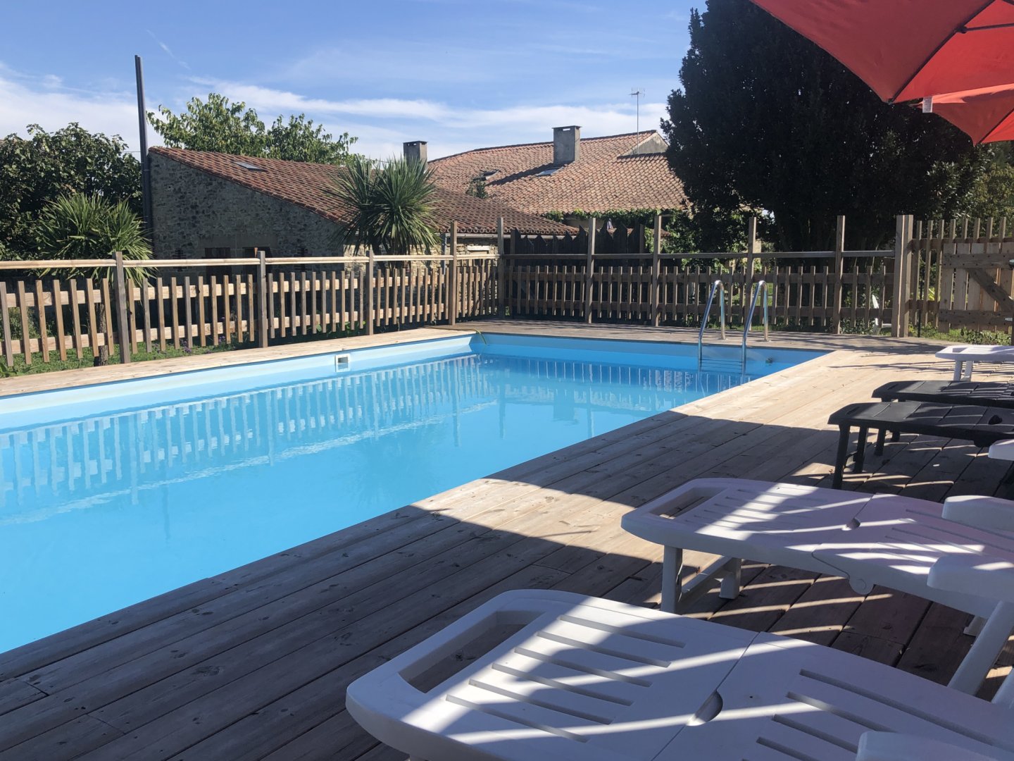 La piscine (10 x 5 m, fond plat de 1,4 m), chauffée, est ouverte de juin à septembre inclus.