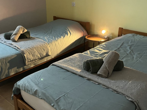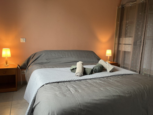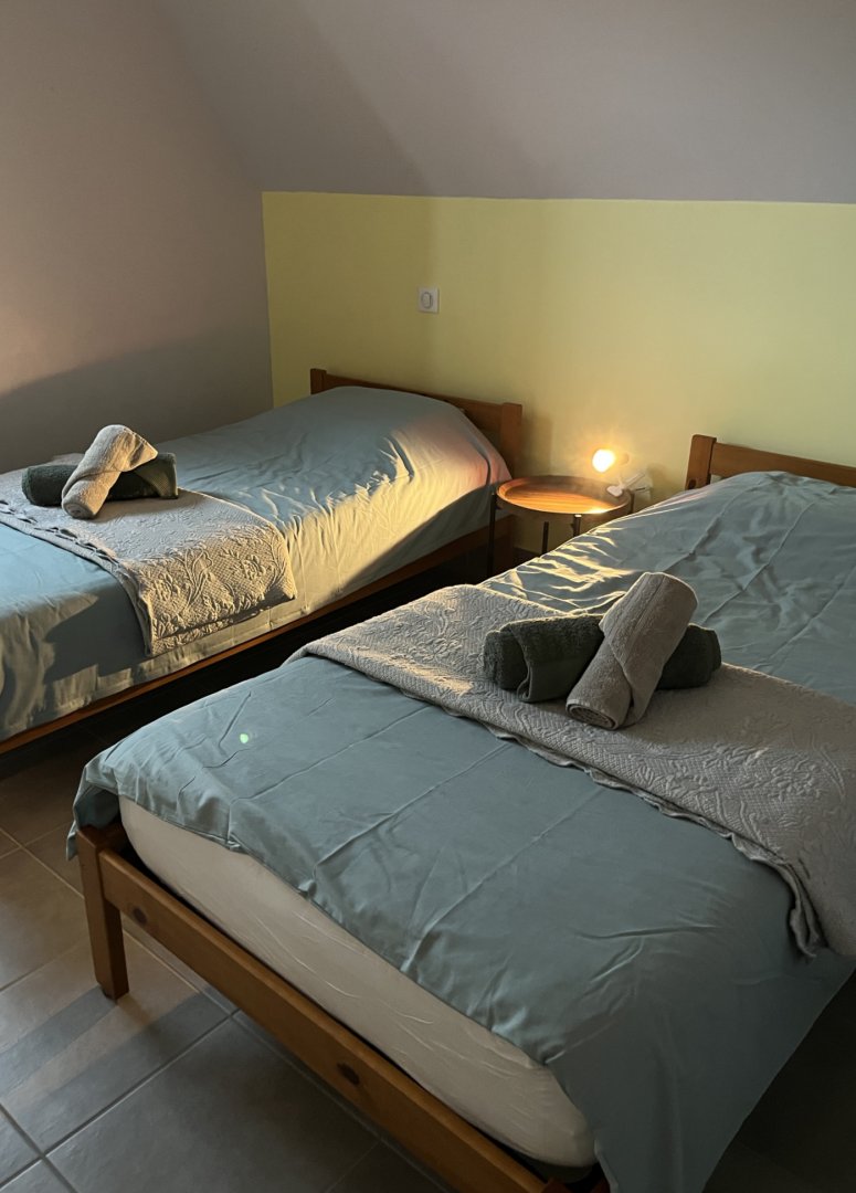 Deux chambres sont dans la continuité de la maison un est équipée d'un lit 160 , l'autre chambre 2 lits 80 (possibilité de les rassembler (pour un couple sur demande)