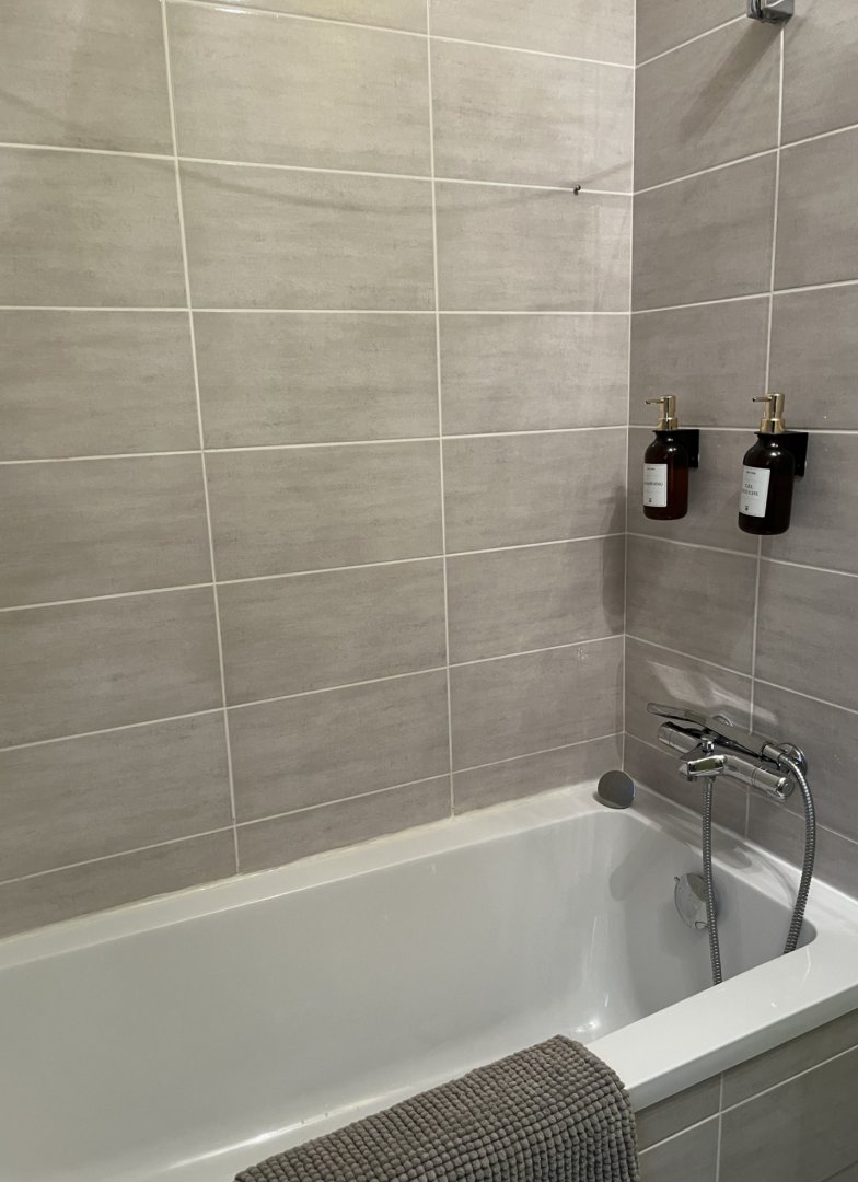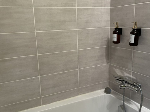 Salle de bains 2 : Baignoire, Vasque, Sèche-cheveux, Sèche-serviettes