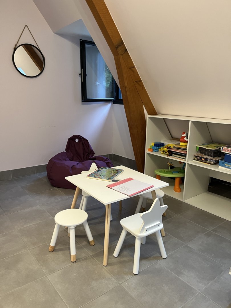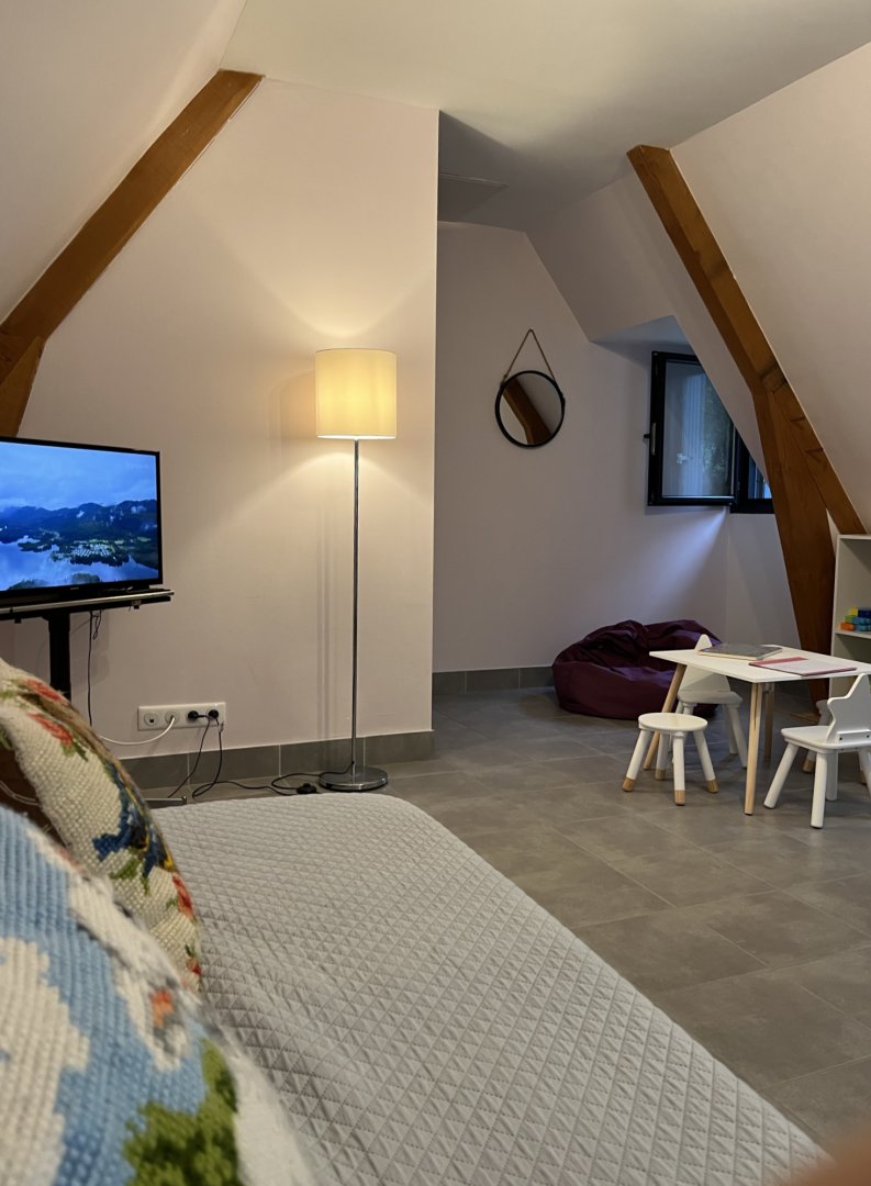 Un petit coin enfant (table;chaise) ,coin télévision et 2 lits d'appoints