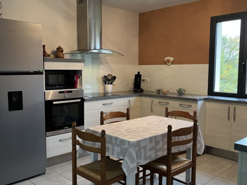 La cuisine est entièrement équipée avec tous le nécessaire pour cuisiner pour 14, lave vaisselle, table induction, grand frigidaire(distributeur d'eau fraîche congélateur.