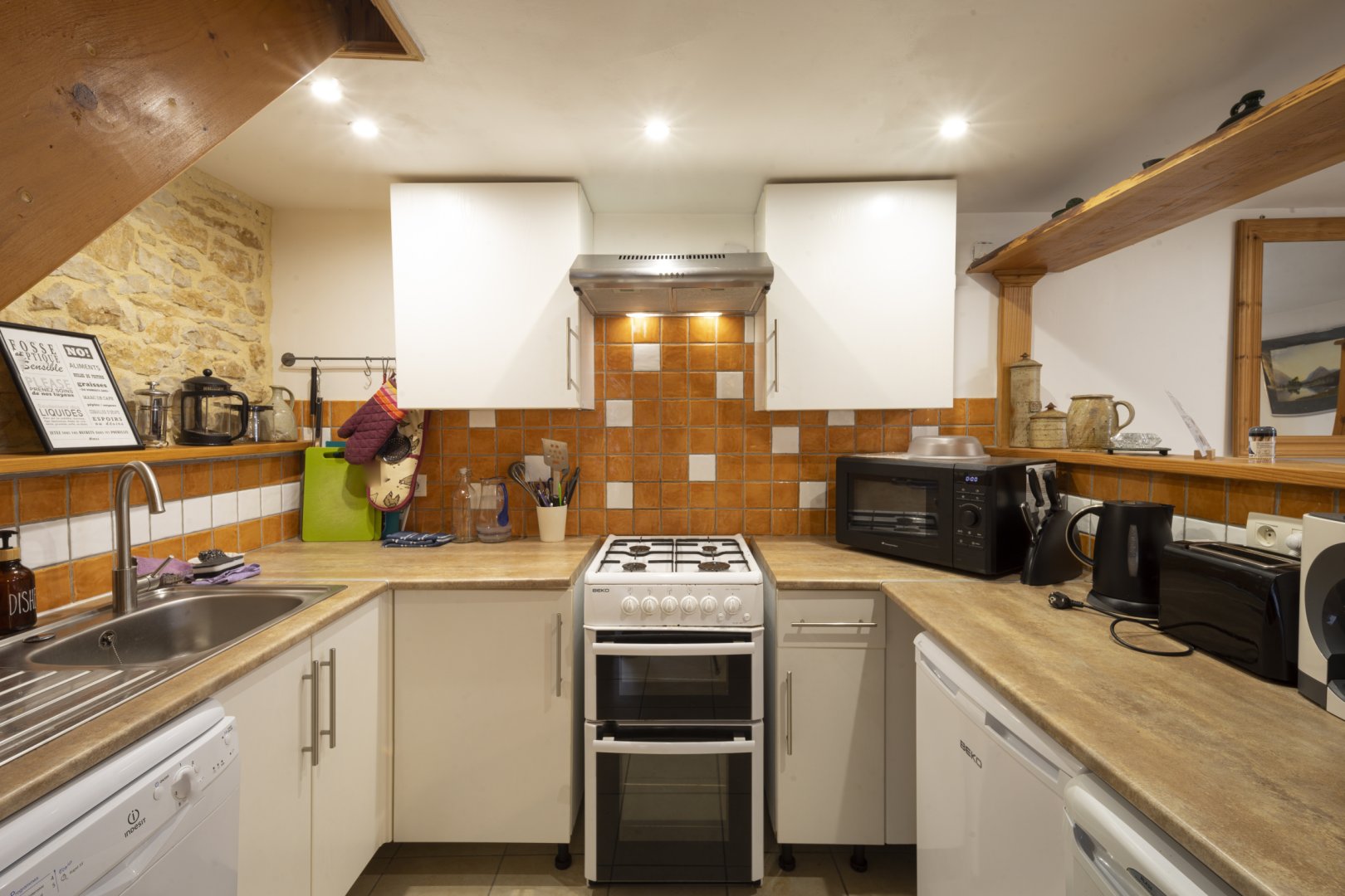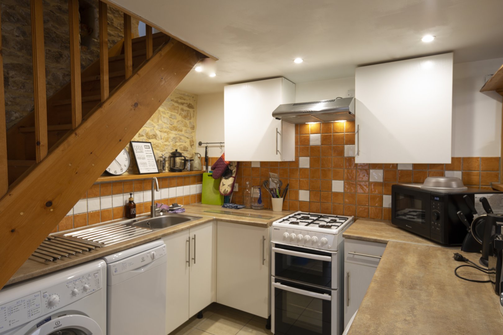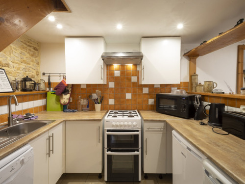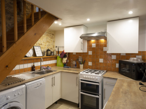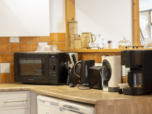 - la cuisine complètement équipée (électroménager, lave-vaisselle, lave-linge) est ouverte sur l'espace salon / salle à manger