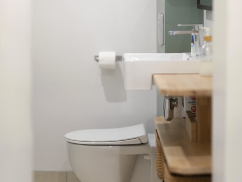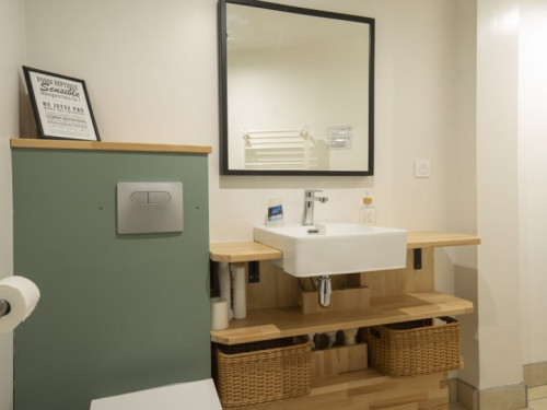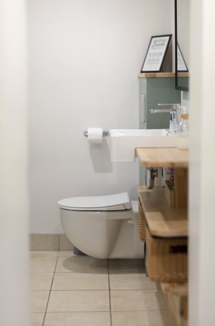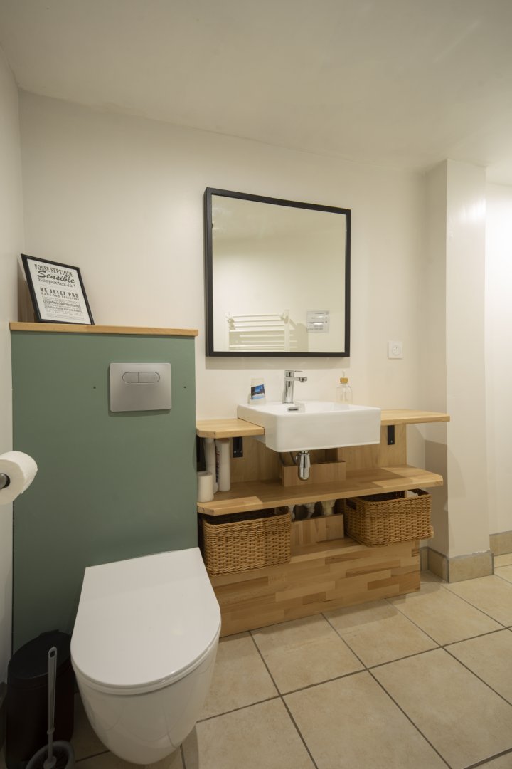 - la salle d'eau en rdc comprend un WC. Vous trouverez un WC séparé à l'étage