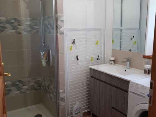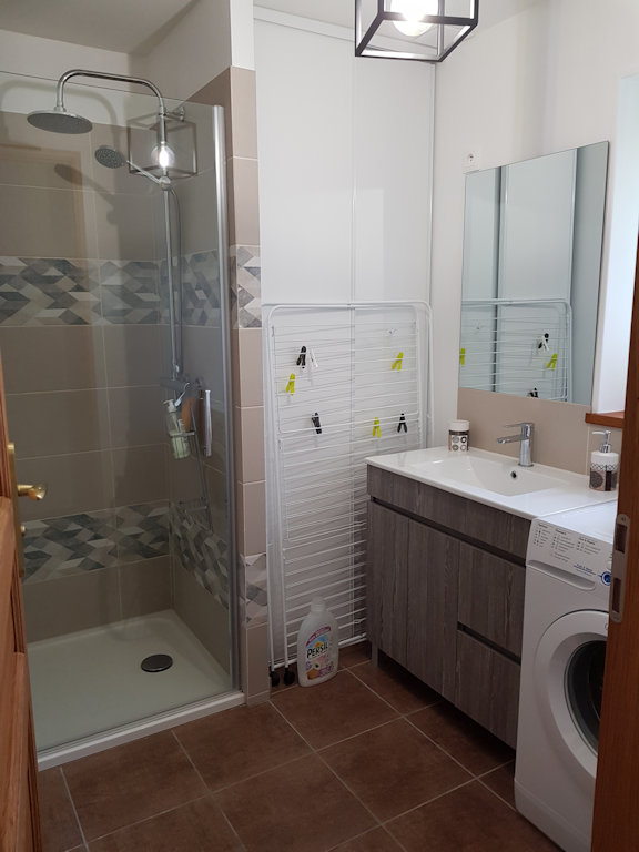 Salle de bains 1 : Douche, Vasque, Sèche-cheveux, Sèche-serviettes