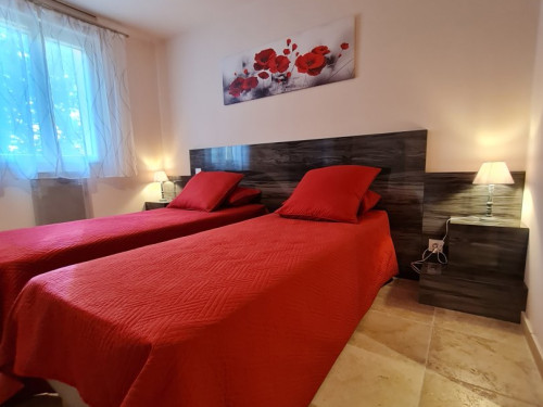 La deuxième chambre, également confortable, est idéale pour les enfants ou les amis, et dispose également d'une salle d'eau indépendante pour plus de commodité. Pour votre divertissement, le salon est équipé d'une télévision, d'une de jeux de société, garantissant des soirées agréables en famille ou entre amis.