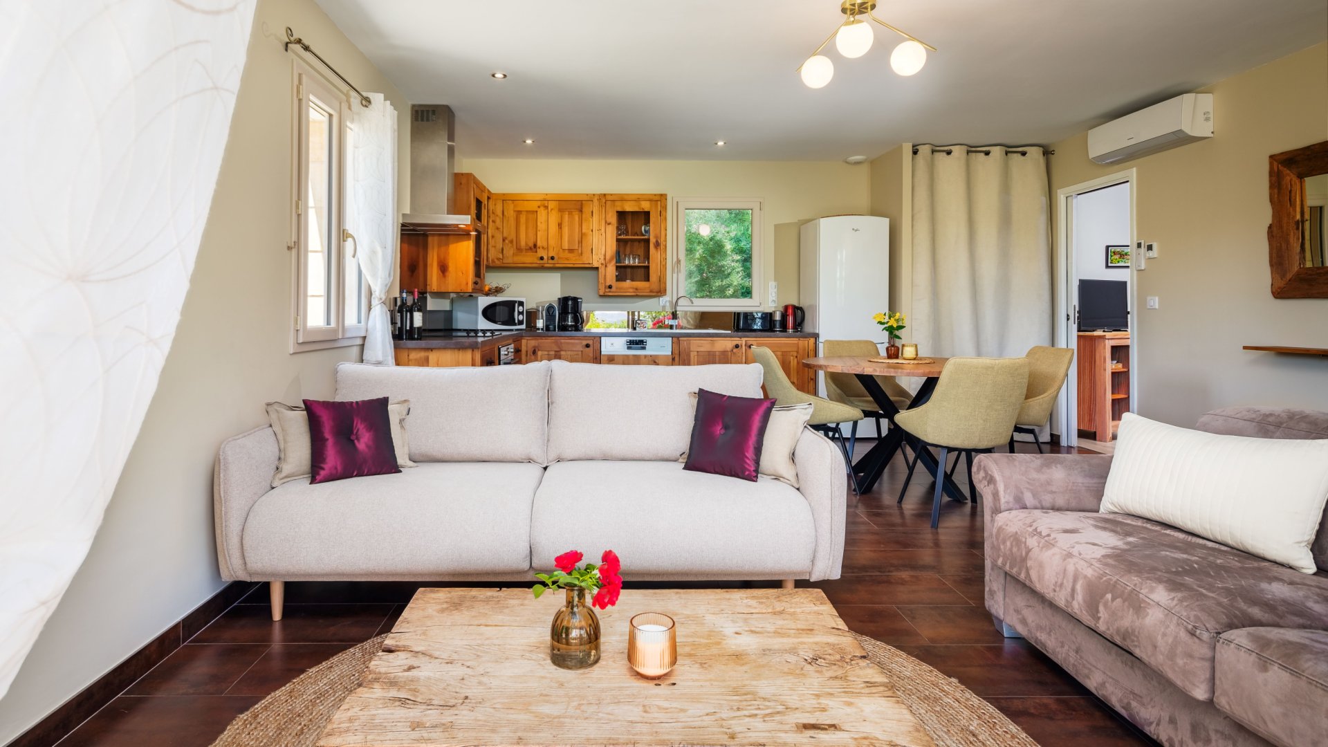 Le séjour dispose d’un canapé lit très confortable pouvant passer la capacité de 4 à 6 personnes.