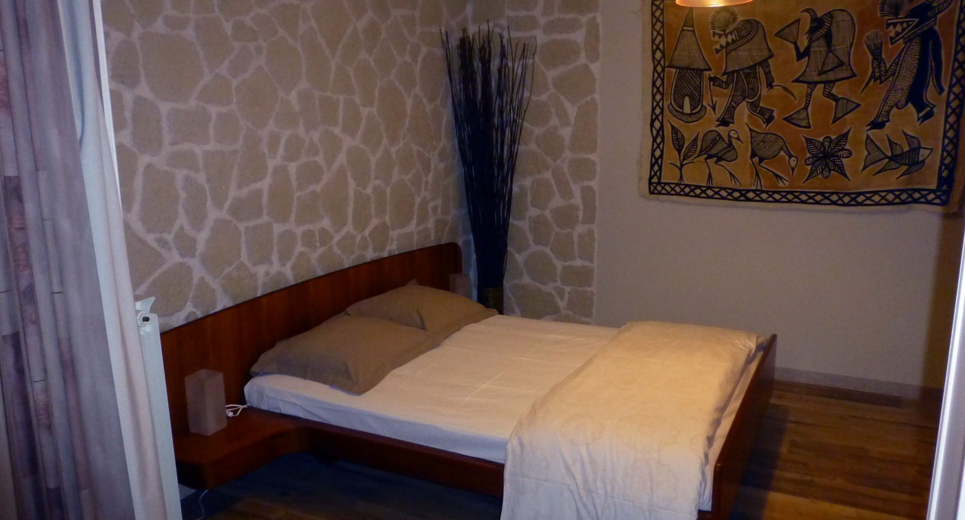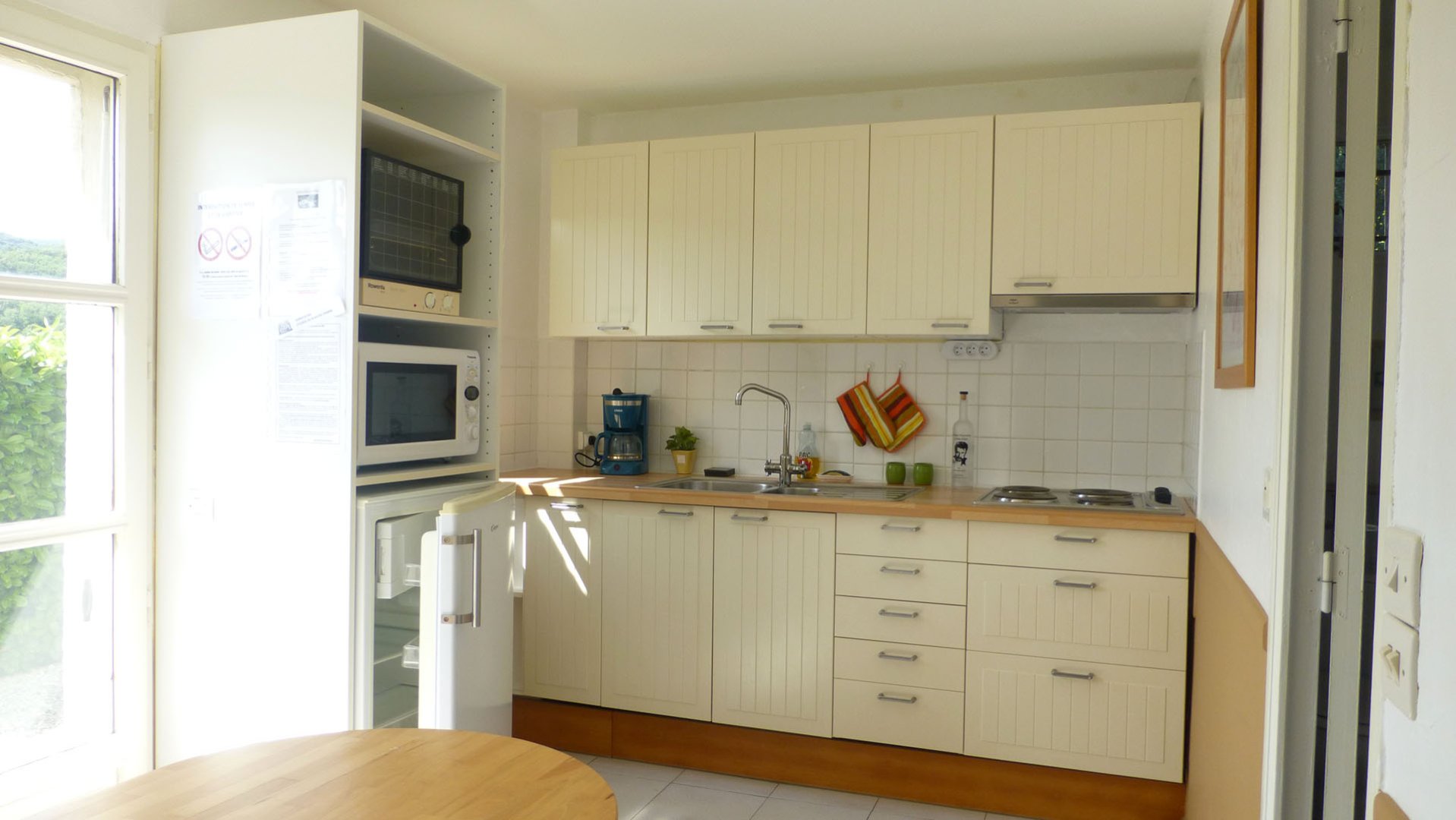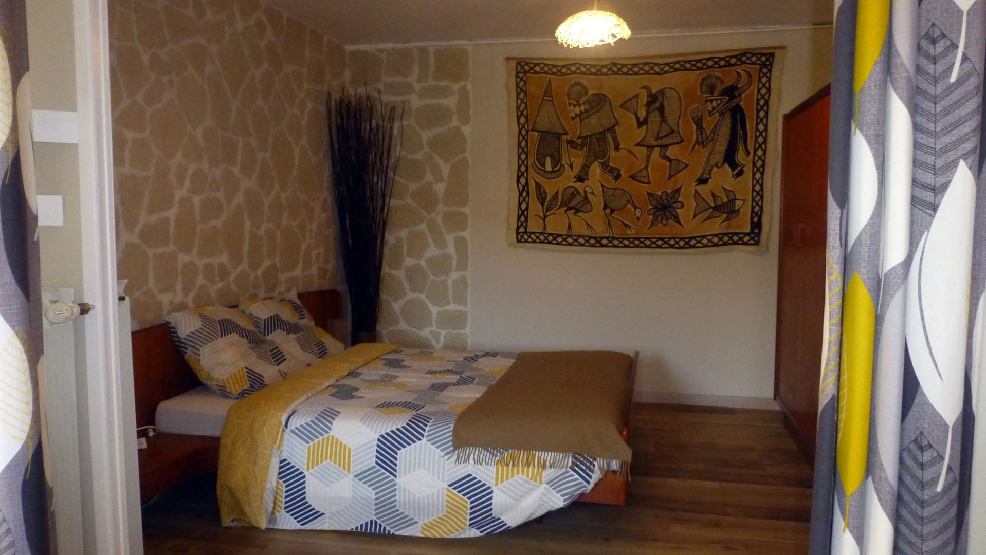 Description : Au rez de jardin, 1 gîte pour 2 personnes comprenant 1 chambre 1 lit 140x190, 1 salon avec canapé d'angle convertible, cuisine équipée,