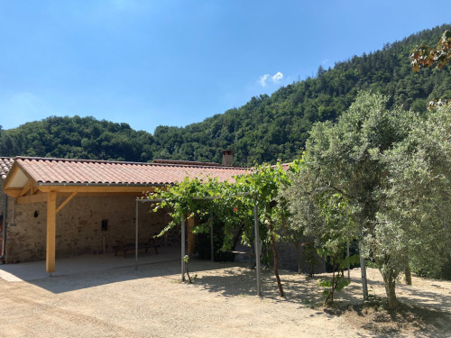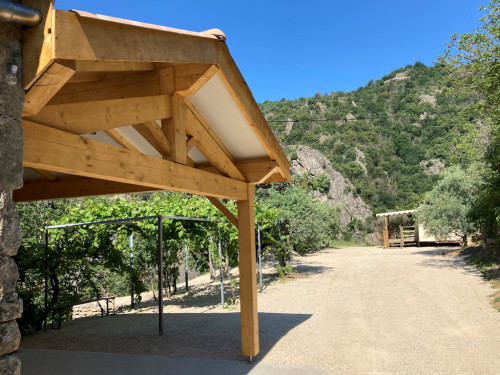 Au milieu du "parc naturel régional des Monts d'Ardèche", dans une propriété privée d’une dizaines d’hectares, entre les oliviers et les tonnelles de vigne.