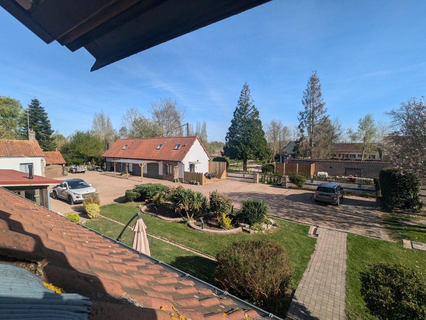 Le gîte dispose d’une terrasse privative avec table, chaises et parasol. Un garage est mis à disposition pour ranger vélos et motos en toute sécurité, et le parc est placé sous **vidéo-surveillance**.