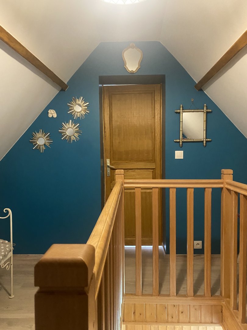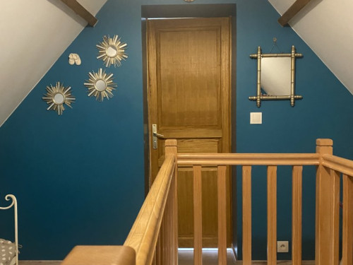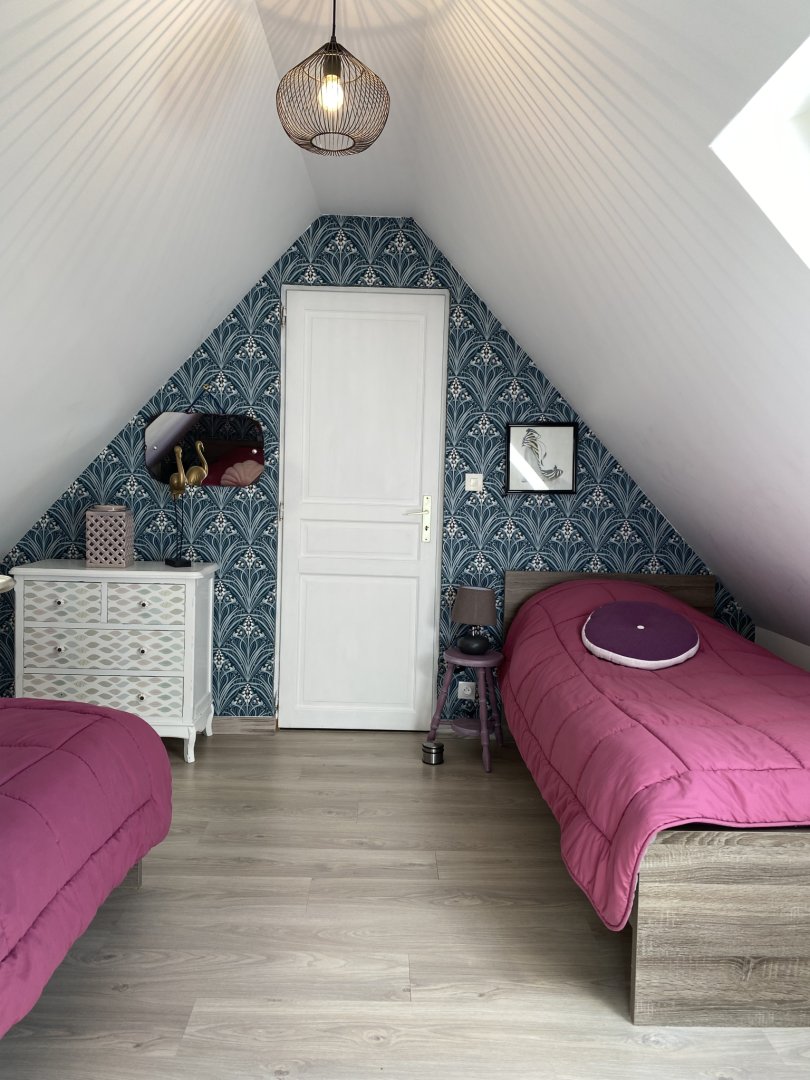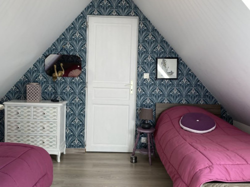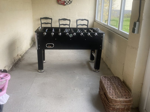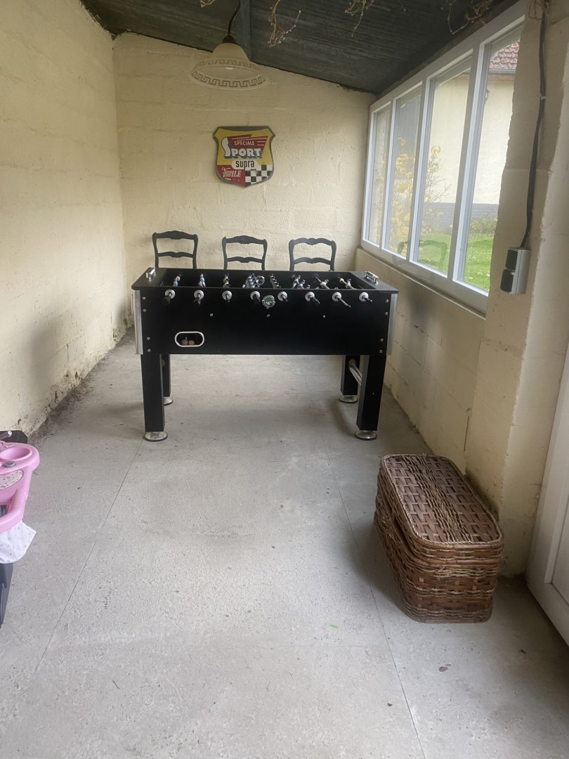 À l'étage : 2 chambres mansardées en enfilades : 1 chambre (2 lits de 90) communicante avec 1 chambre (1 lit 140), séparée par un grand dressing, espace détente sur le palier. Salle de jeux avec baby foot , à l'extérieur terrain de pétanque , balançoire, table de ping-pong, panier de basket, barbecue.