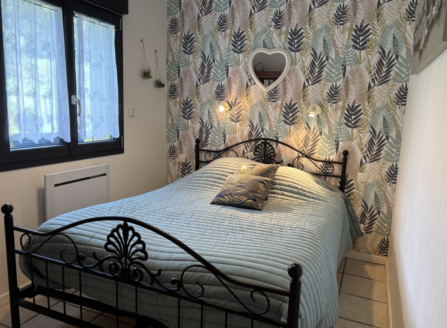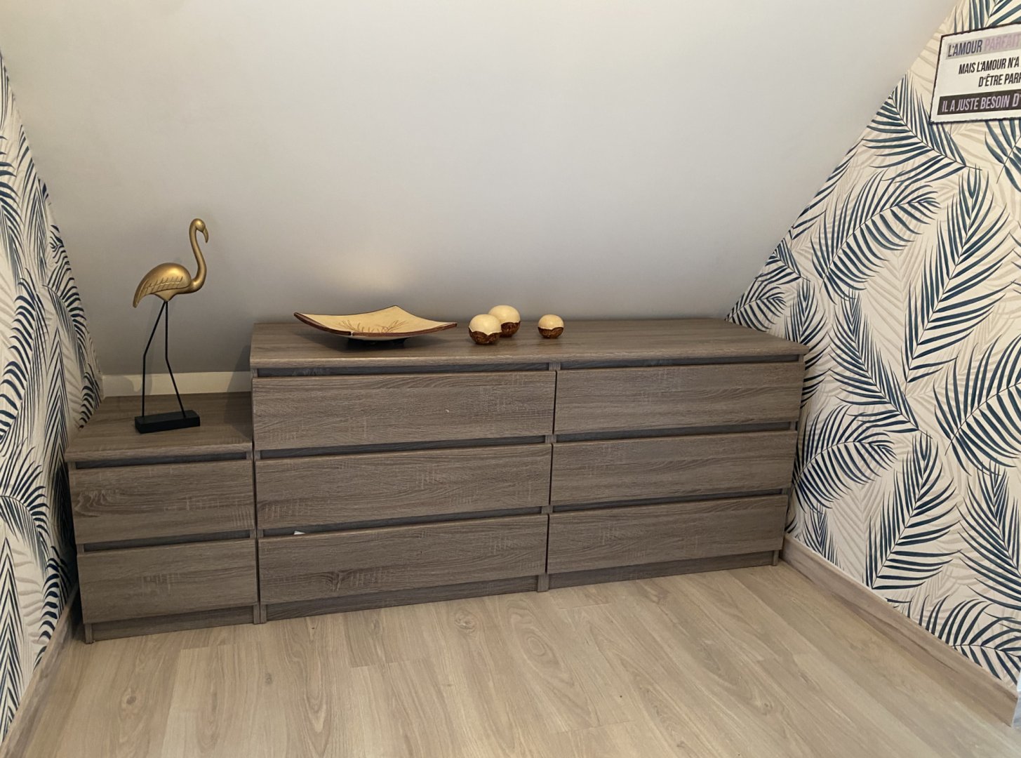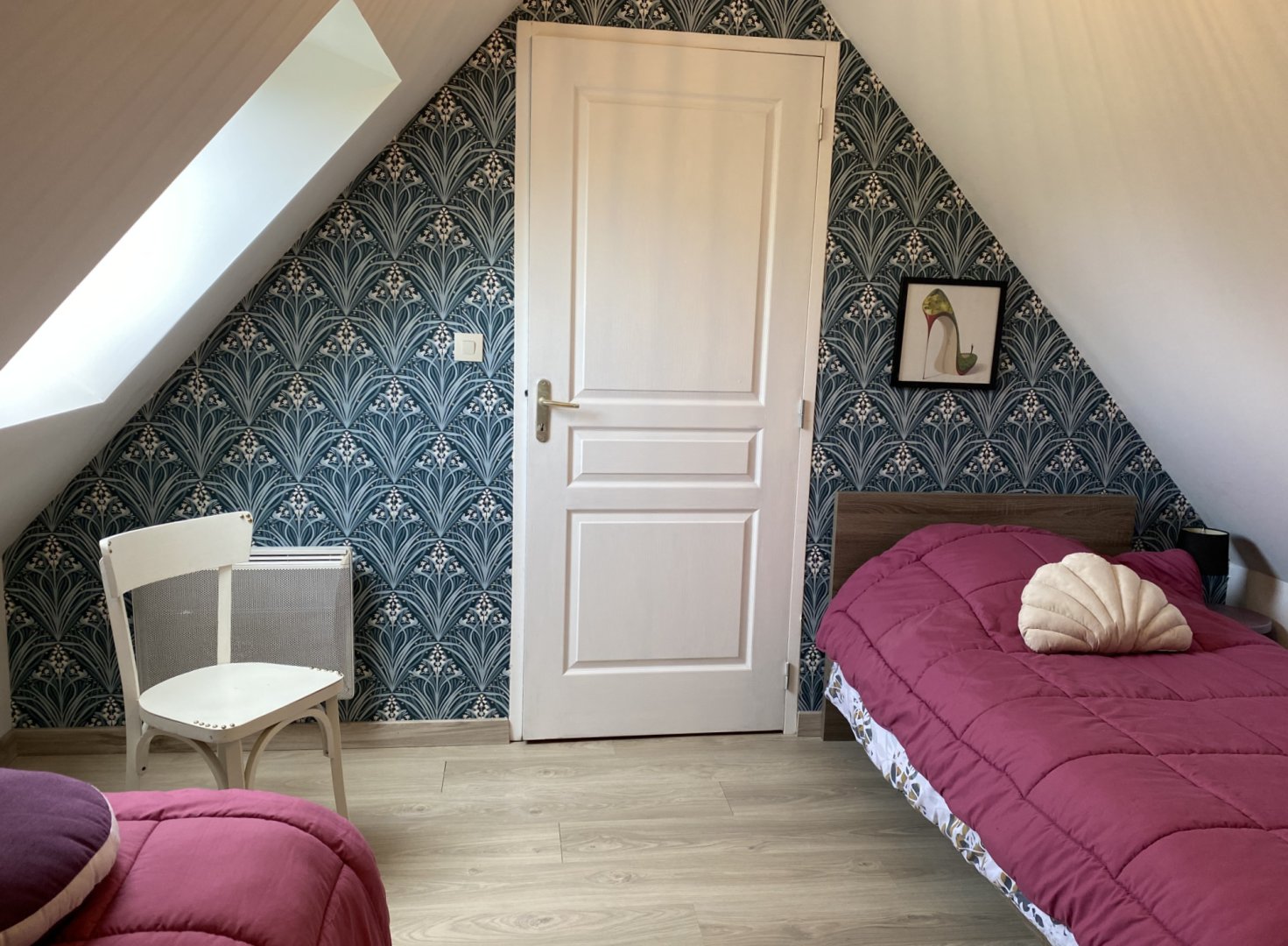 À l'étage : 2 chambres mansardées en enfilades : 1 chambre (2 lits de 90) communicante avec 1 chambre (1 lit 140), séparée par un grand dressing, espace détente sur le palier. Salle de jeux avec baby foot , à l'extérieur terrain de pétanque , balançoire, table de ping-pong, panier de basket, barbecue.