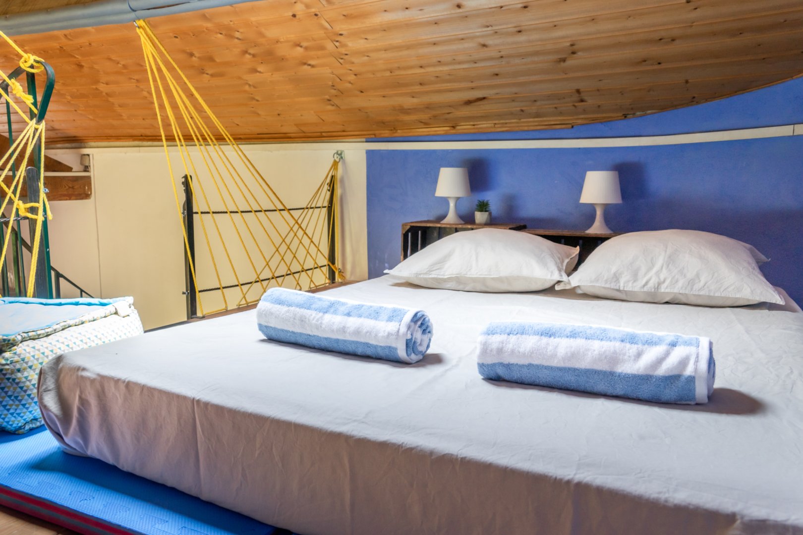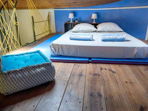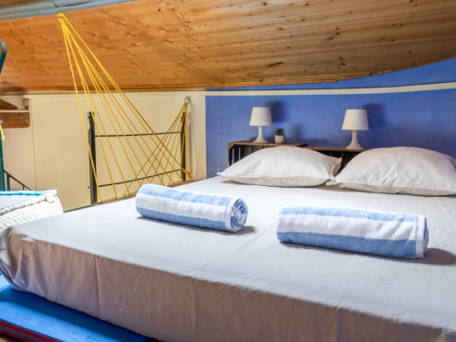 Aura dispose d'un grand espace de vie, d'une cuisine bien équipée, de deux chambres doubles dotées de salles de bain privatives, et de deux lits doubles sur des mezzanines. De là, vous accédez à votre jardin privé et à la cour ombragée par de vieux platanes. Profitez de la douce étreinte du soleil ou rafraîchissez-vous dans notre piscine.