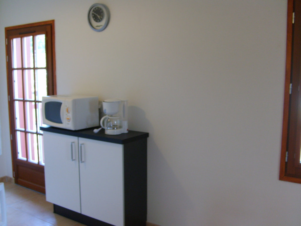 - d'une cuisine équipée avec four, plaques vitrocéramique, hotte, micro-onde, cafetière, bouilloire, grille pain, réfrigérateur-congélateur, lave vaisselle