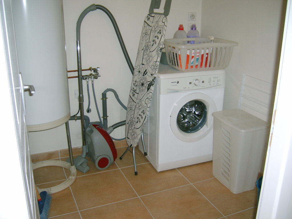 - d'un cellier avec lave-linge, aspirateur, fer à repasser, serpillère