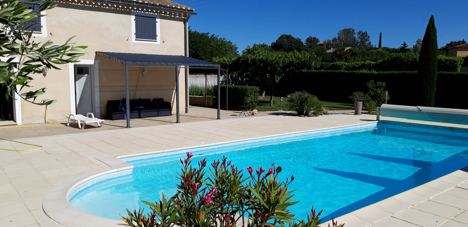 - piscine chauffée (12,50 x 5 m) d'une profondeur en pente douce jusqu'à 2,20 m à partager avec les propriétaires.