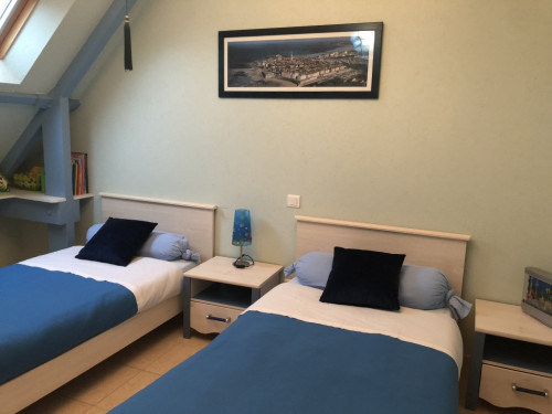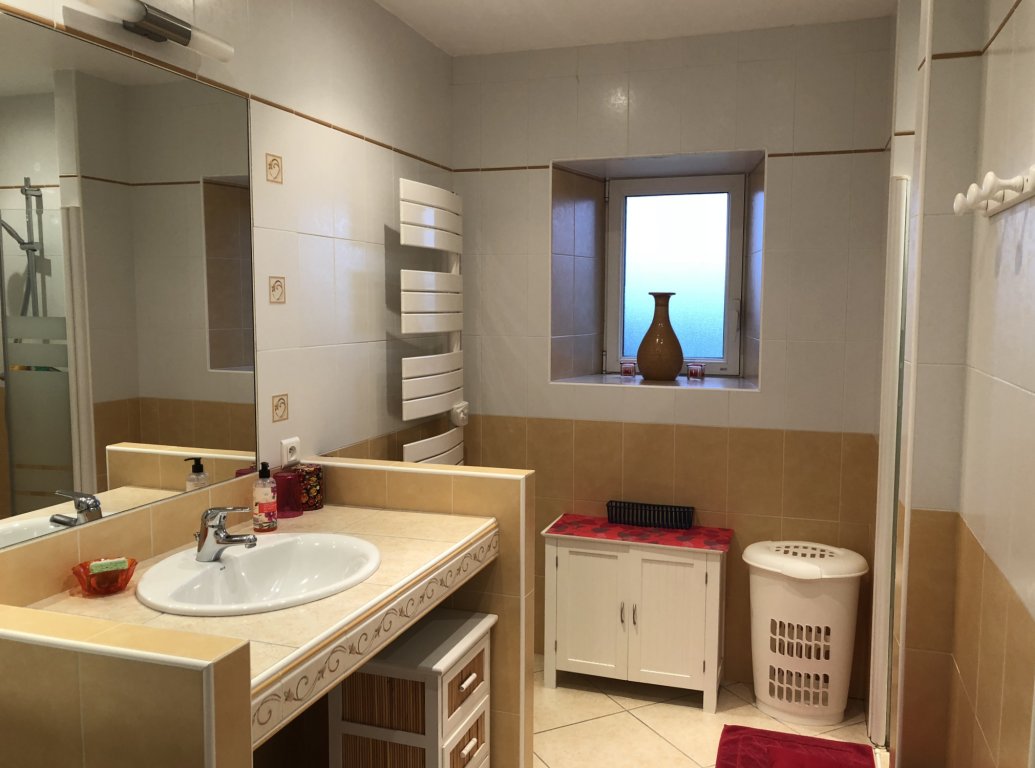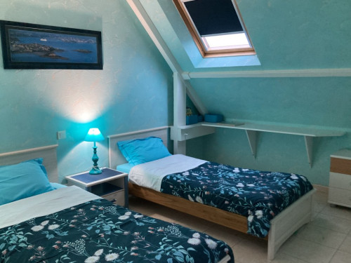 Il comprend également une salle de douche avec sanitaires et deux chambres spacieuses à l’étage.