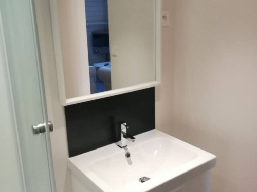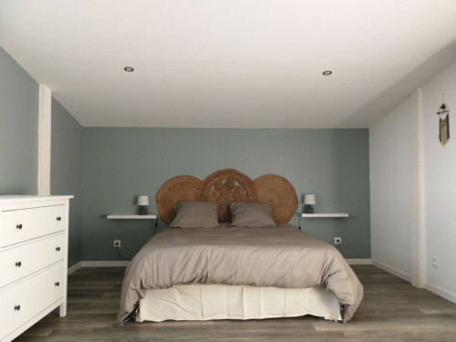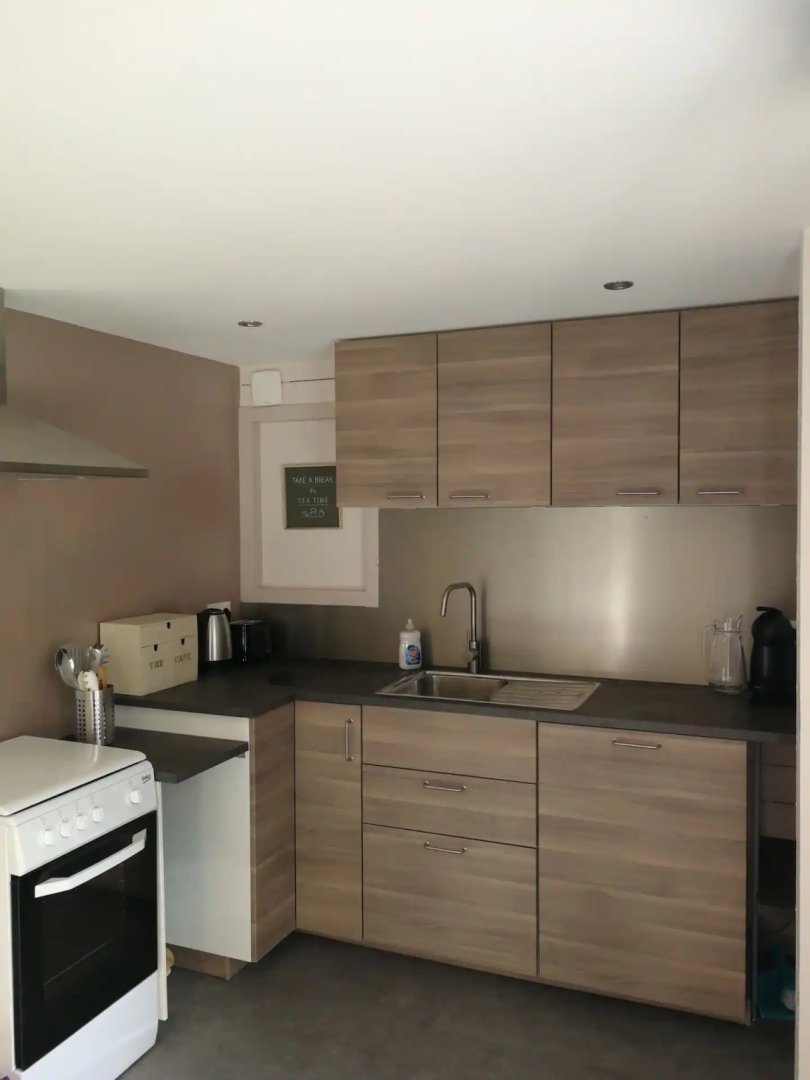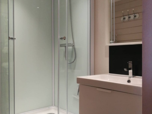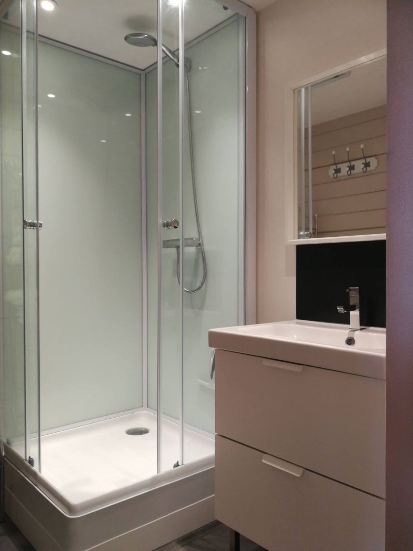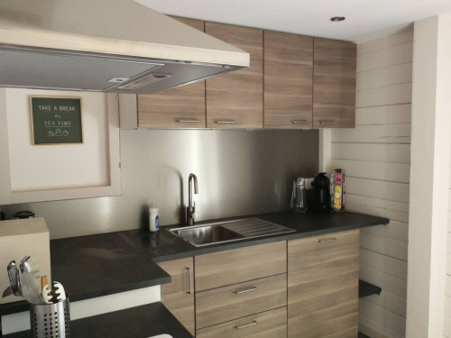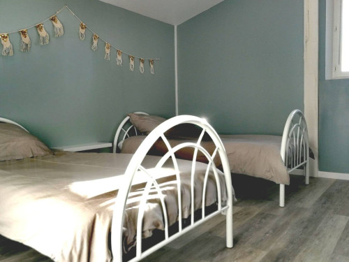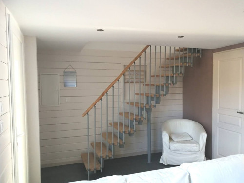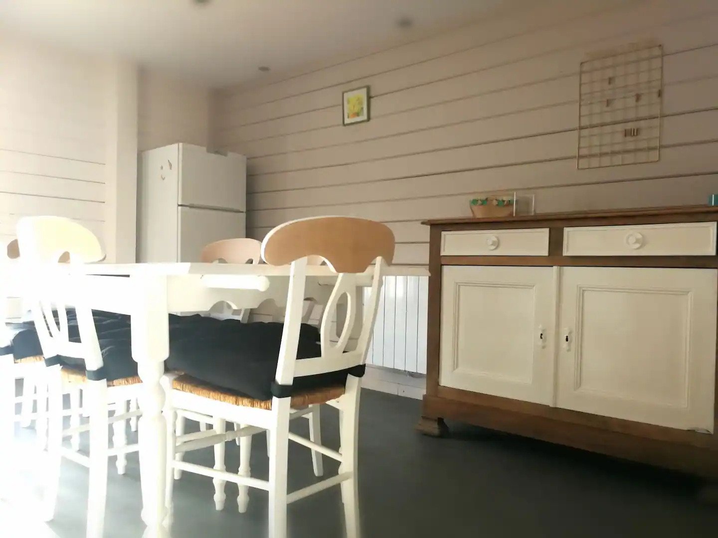 Votre logement est équipé d'une cuisine avec lave-vaisselle, d'une salle de bain avec douche, d'une chambre avec un lit double et deux lits simples ainsi que d'une mezzanine avec 1 lit double et un lit gigogne, des espaces de rangement pour stocker vos valises et affaires.