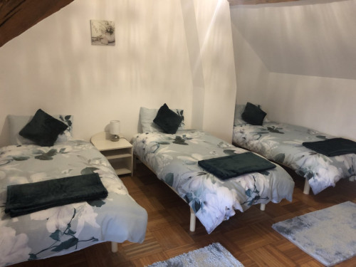 Pour une famille jusqu'à 6 personnes, ce gite est bien équipée et beau. Avec la possibilité de demander le changement des lits en 1 lits doubles (180x190) et un lit simple dans chaque chambre. Rénovée en 2023.