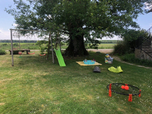 Chaque gîte dispose de son propre jardin à l'arrière avec table, chaises et barbecue et il y a une grande pelouse et une aire de jeux à l'avant adjacente à la piscine chauffée et clôturée. La salle de réception peut être utilisée pour les jeux et dispose d'un baby-foot et d'un mini billard.
