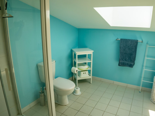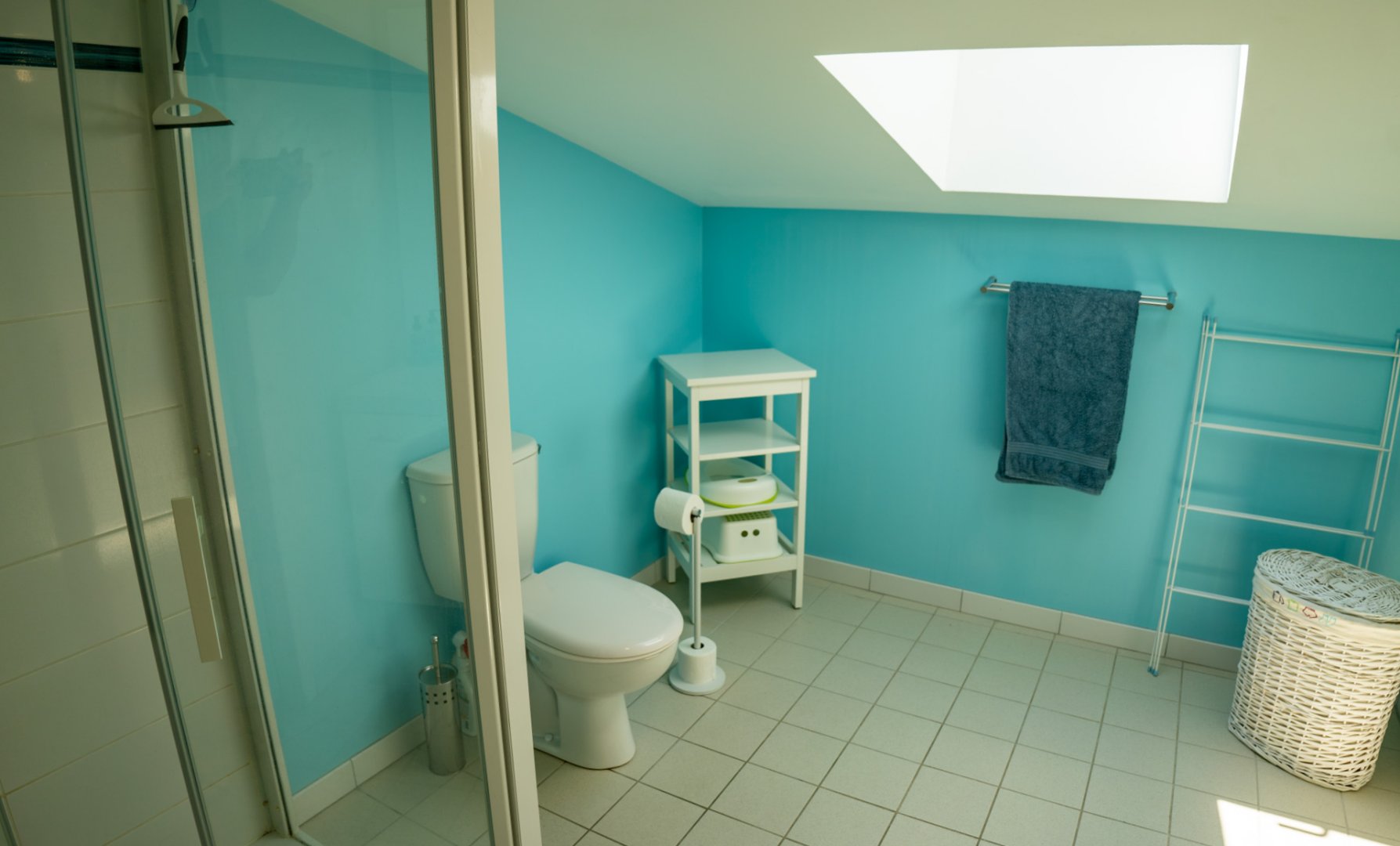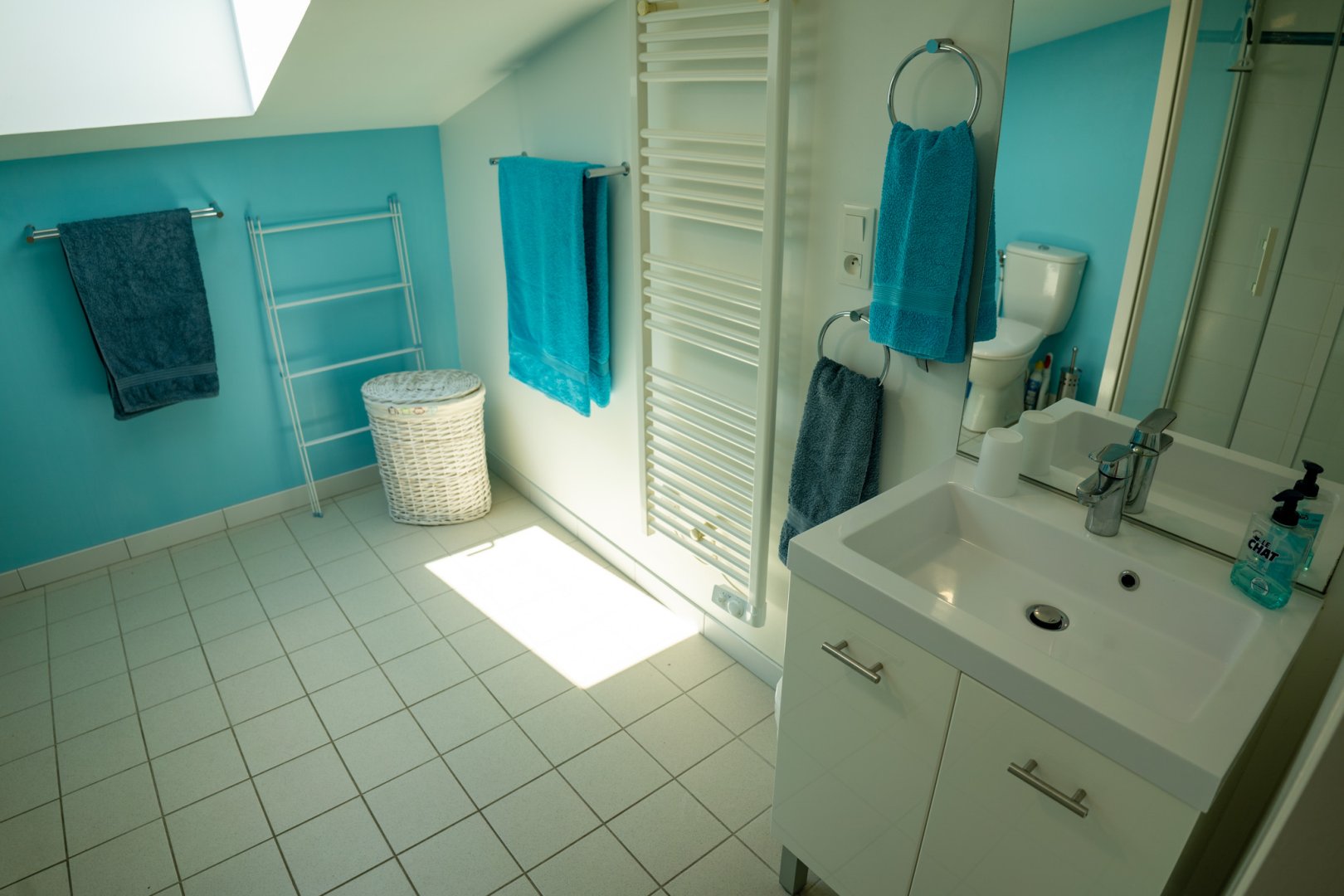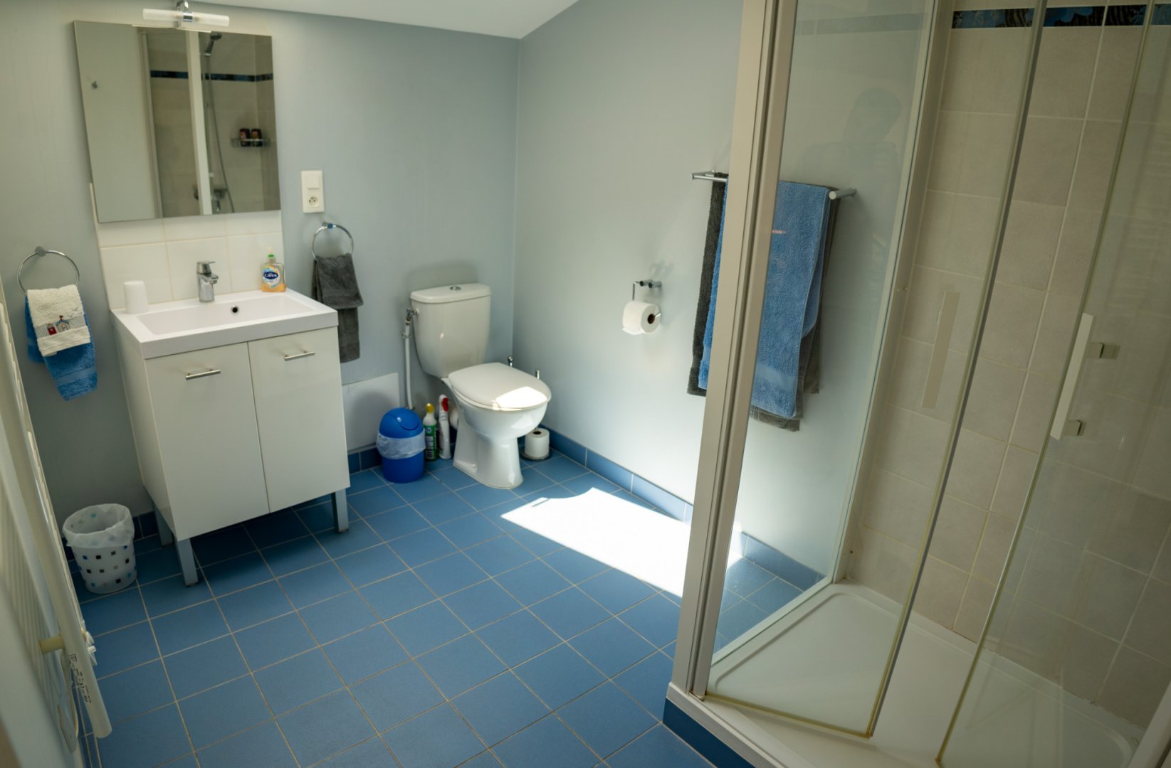 Salle de bains 1 : Douche, Vasque, Sèche-cheveux, Sèche-serviettes