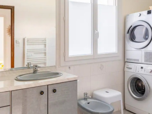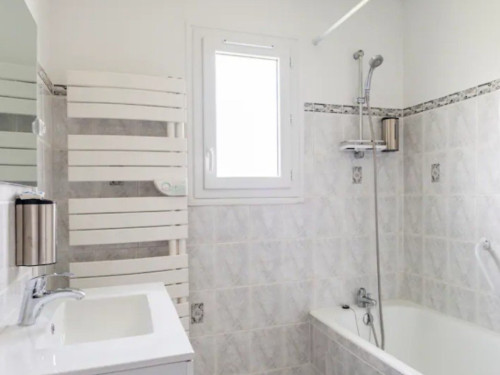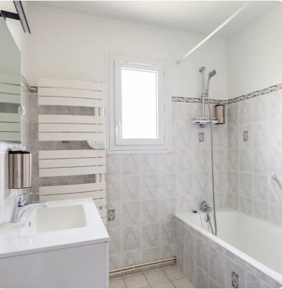 Salle de bains 2 : Baignoire, Vasque, Sèche-cheveux, Sèche-serviettes