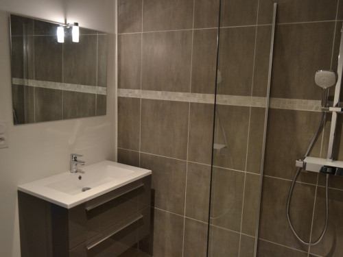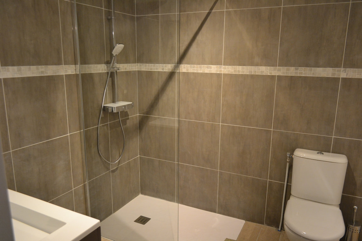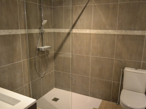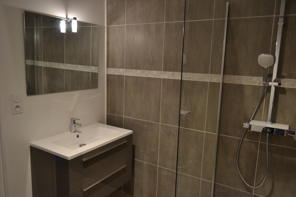 Salle de bains 1 : Douche à l'italienne, Vasque, Sèche-cheveux, Sèche-serviettes
