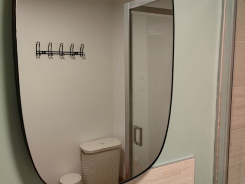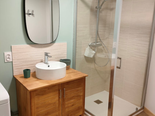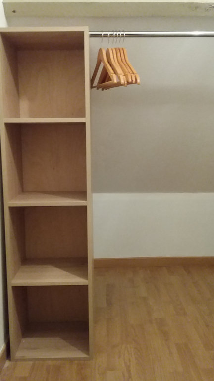 À disposition : fer et table à repasser, étendoir à linge, aspirateur et chaise haute bébé.