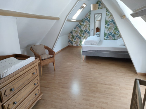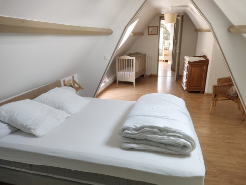 - la 1ère avec 1 lit double (140x190), 1 lit bébé avec commode et matelas à langer ; coin penderie attenant à la chambre
