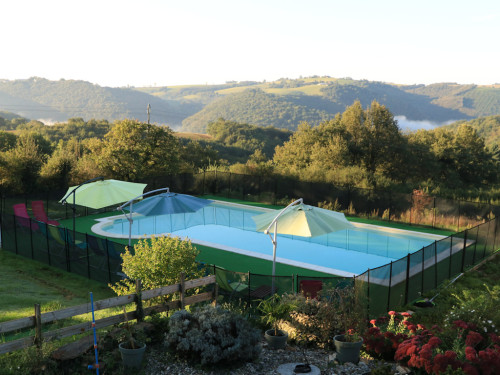 Rénové en trois gîtes avec grande piscine. Les vues de la gorge du Viaur sont spectaculaires.