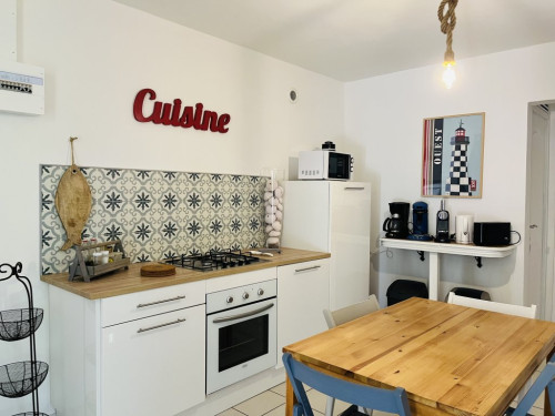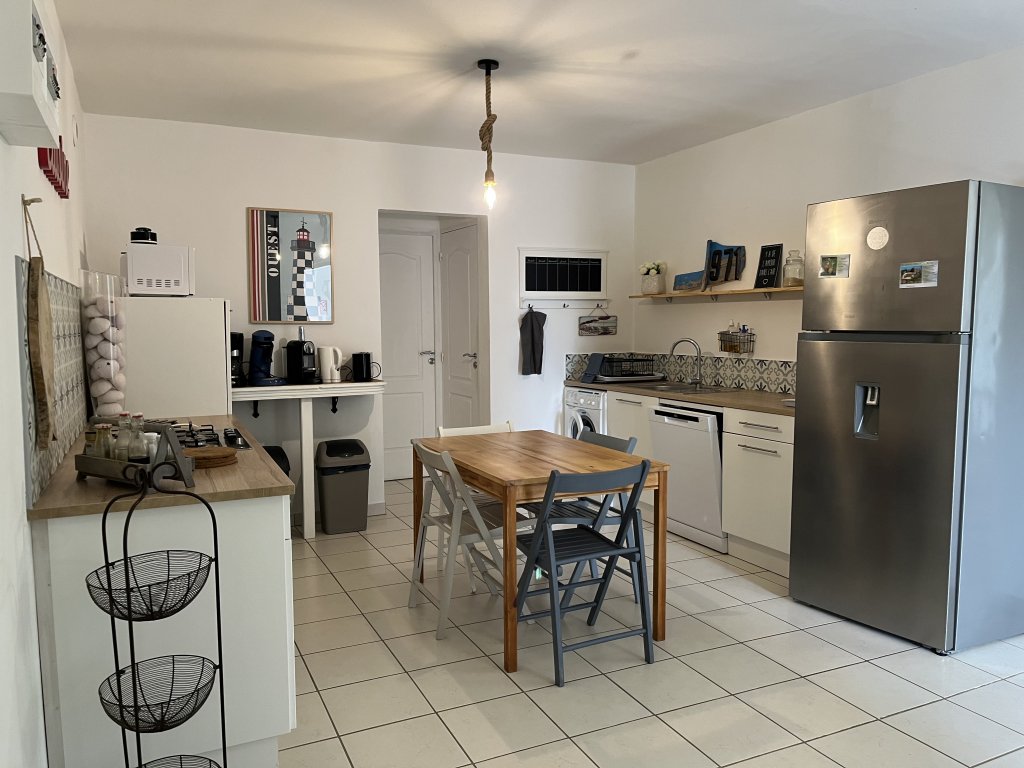 La cuisine dispose de tous les équipements (lave-vaisselle, four, lave-linge, cafetière (filtre et Nespresso), grille-pain, bouilloire, réfrigérateur).