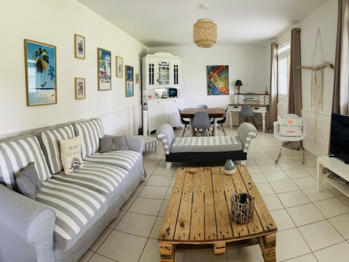 Le salon, salle à manger avec son canapé (convertible lit 160x200, TV, WiFi).