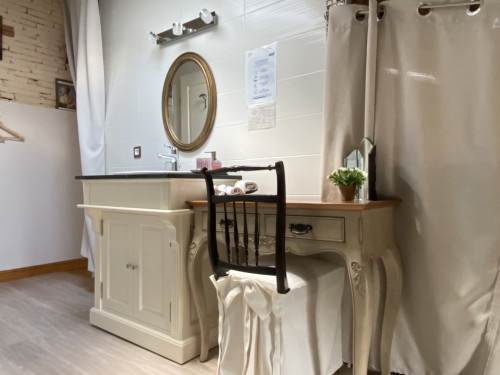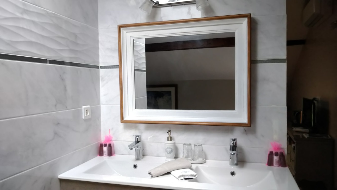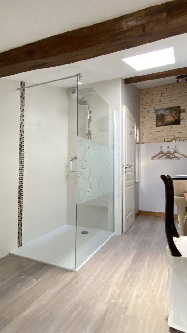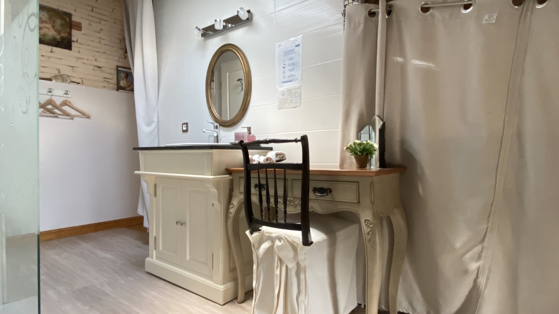 Salle de bains 1 : Douche, Lavabo, Sèche-cheveux, Sèche-serviettes