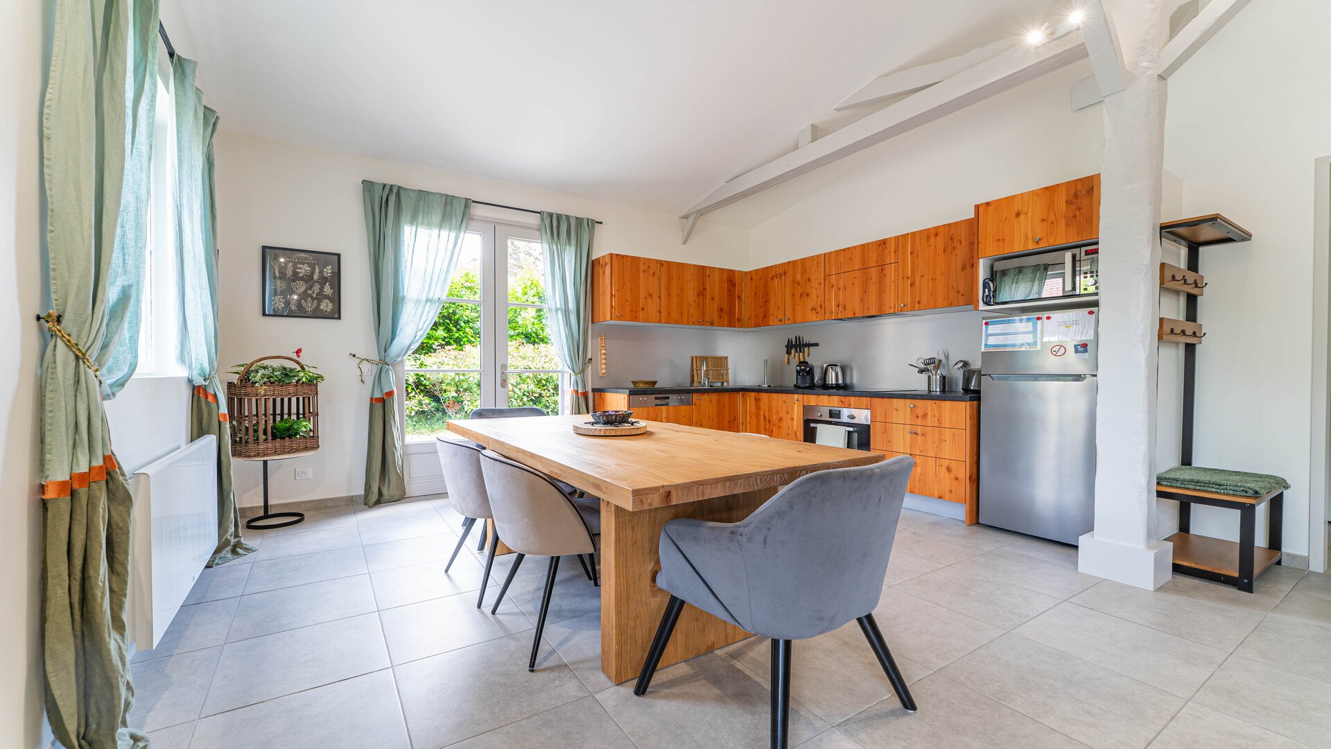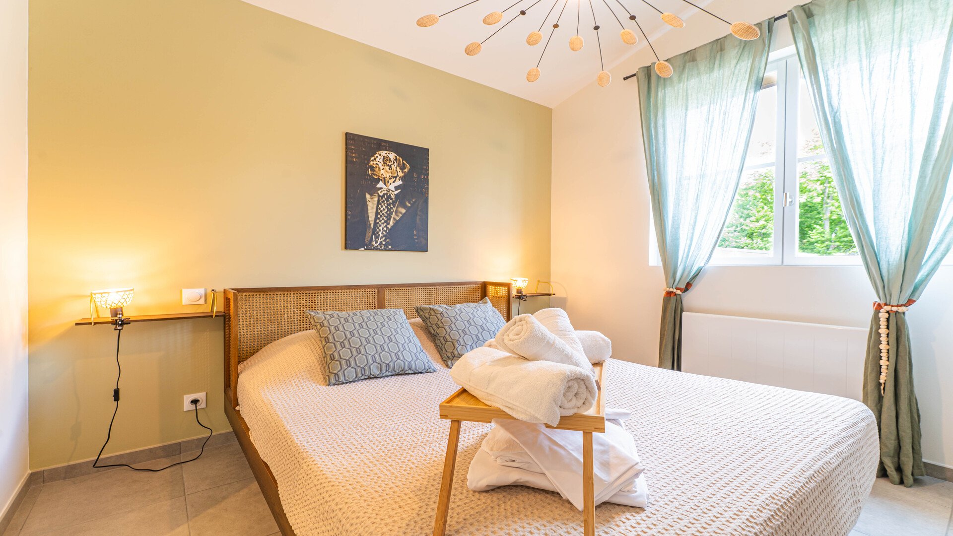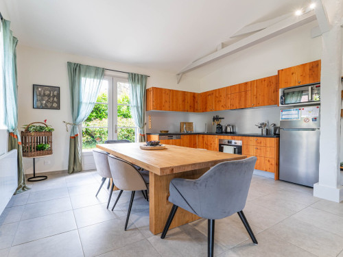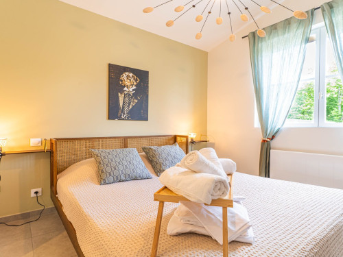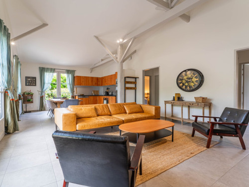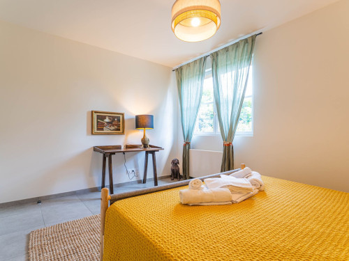 Located in the heart of the Médoc, 5 km from the ocean beaches, the Domaine du Flamand offers furnished cottages, in a pleasant environment with communal swimming pool (10x5m and 1.60m depth maximum). The cottage "Cottage" is set in an independent house and turns its back on the old forge (including 3 cottages for 2 people). It features a private terrace with outdoor furniture, parasol and barbecue, and a garden (development in progress). The cottage consists of a main room with kitchen, dining area and TV lounge, 3 bedrooms (2 beds 160 and 2 beds 90), one of which has its private bathroom, a bathroom, a separate toilet and a laundry room (washing machine and maintenance equipment). Electric heating, Wifi. Sheets, towels and heating are included in the price. Possibilité de ménage en fin de séjour (service payant). Taxe de séjour en sus. Piscine non chauffée à disposition du 1er juin au 30 septembre.