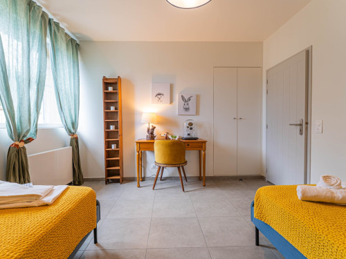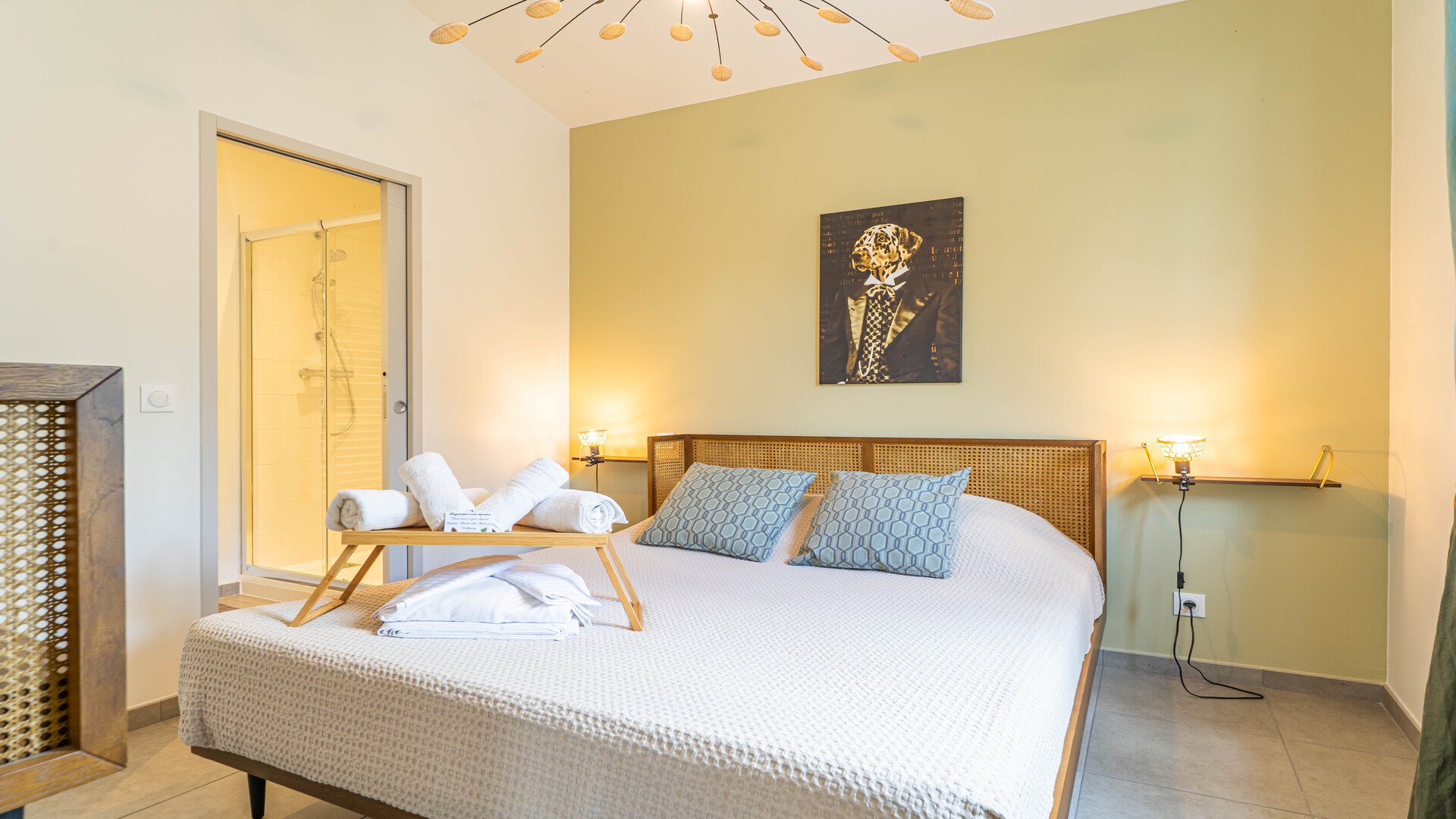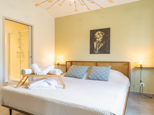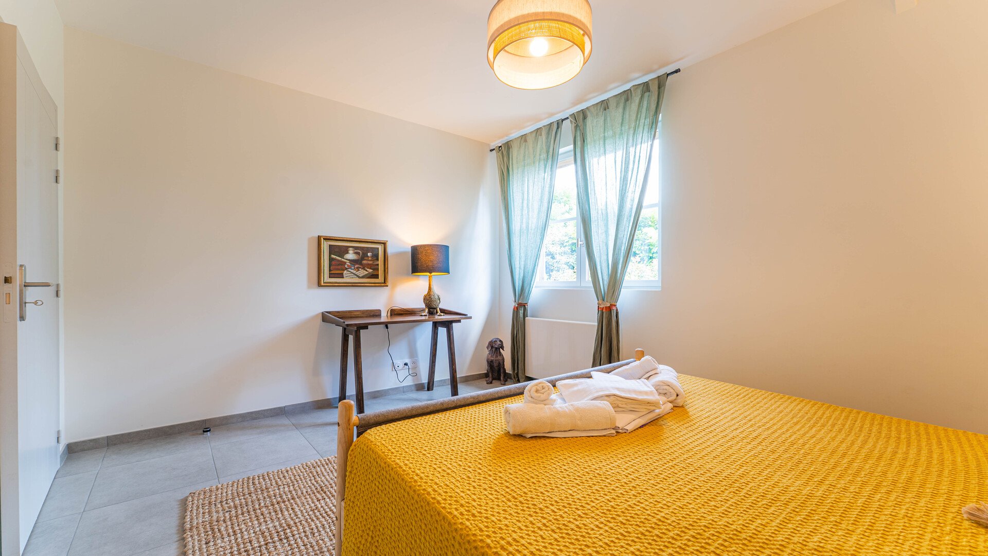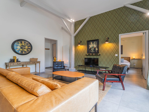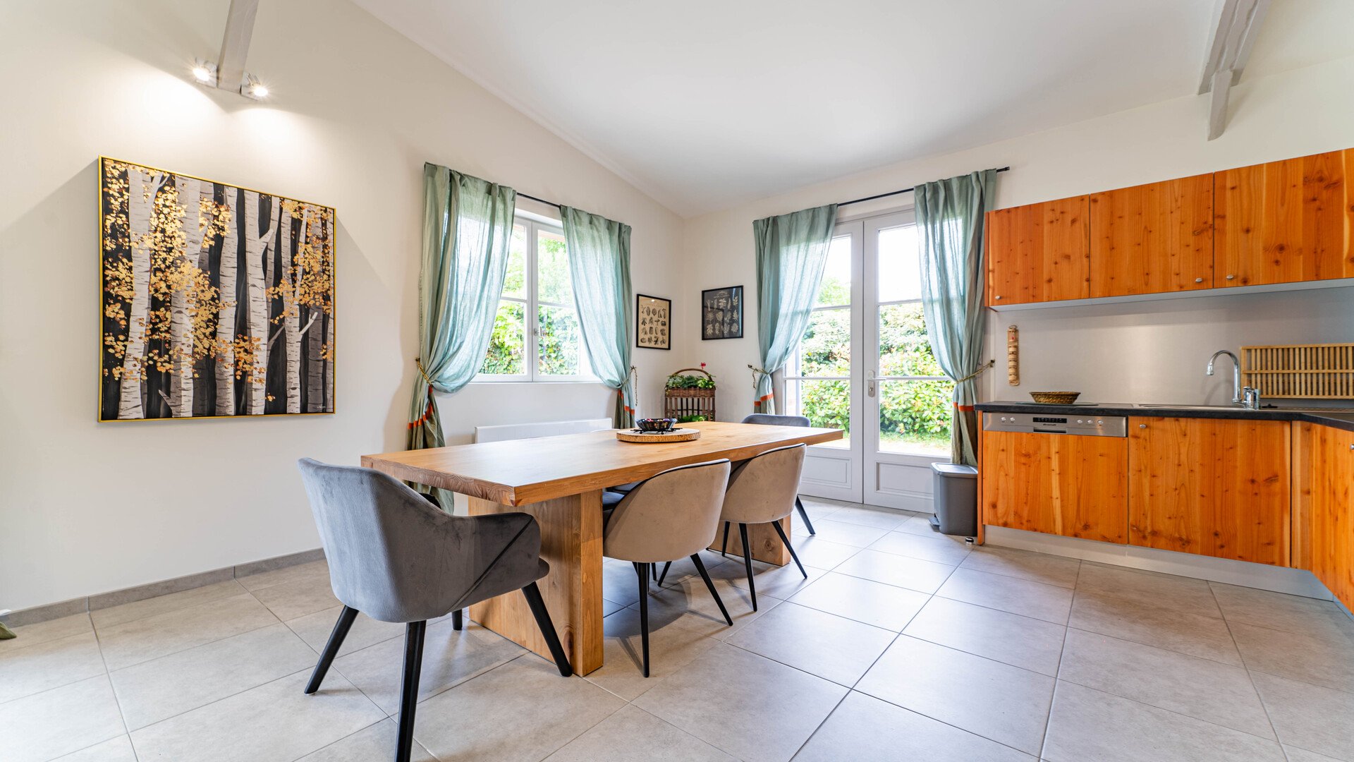 Located in the heart of the Médoc, 5 km from the ocean beaches, the Domaine du Flamand offers furnished cottages, in a pleasant environment with communal swimming pool (10x5m and 1.60m depth maximum). The cottage "Cottage" is set in an independent house and turns its back on the old forge (including 3 cottages for 2 people). It features a private terrace with outdoor furniture, parasol and barbecue, and a garden (development in progress). The cottage consists of a main room with kitchen, dining area and TV lounge, 3 bedrooms (2 beds 160 and 2 beds 90), one of which has its private bathroom, a bathroom, a separate toilet and a laundry room (washing machine and maintenance equipment). Electric heating, Wifi. Sheets, towels and heating are included in the price. Possibilité de ménage en fin de séjour (service payant). Taxe de séjour en sus. Piscine non chauffée à disposition du 1er juin au 30 septembre.