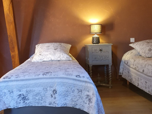 Ce gîte offre deux chambres spacieuses, chacune avec sa propre salle d'eau pour une intimité totale. La première chambre est située au rez-de-chaussée et est équipée d'un lit double de 160x200 cm, parfait pour un couple. La deuxième chambre, située à l'étage, est idéale pour une petite famille ou un groupe d'amis. Elle dispose canapé BZ avec un couchage de 160x200 cm ainsi que de deux lits enfants de 80x200 cm, qui peuvent être rapprochés sur demande pour plus de commodité.