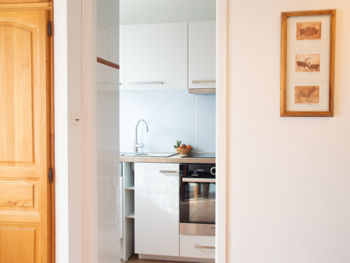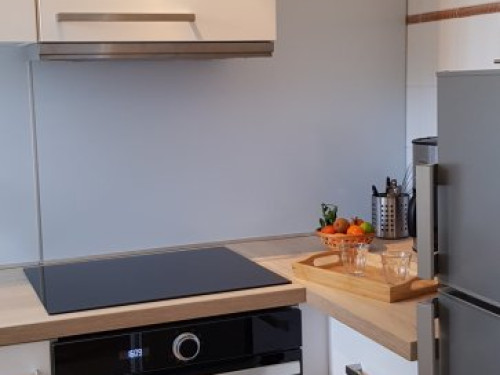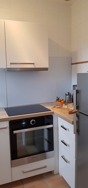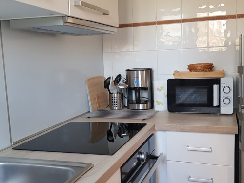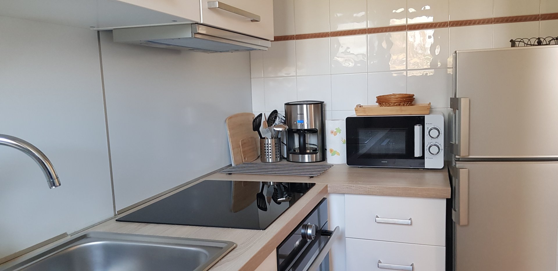 La pièce à vivre de 25 m² dispose d’un salon avec télévision, un coin repas et une cuisine toute équipée.